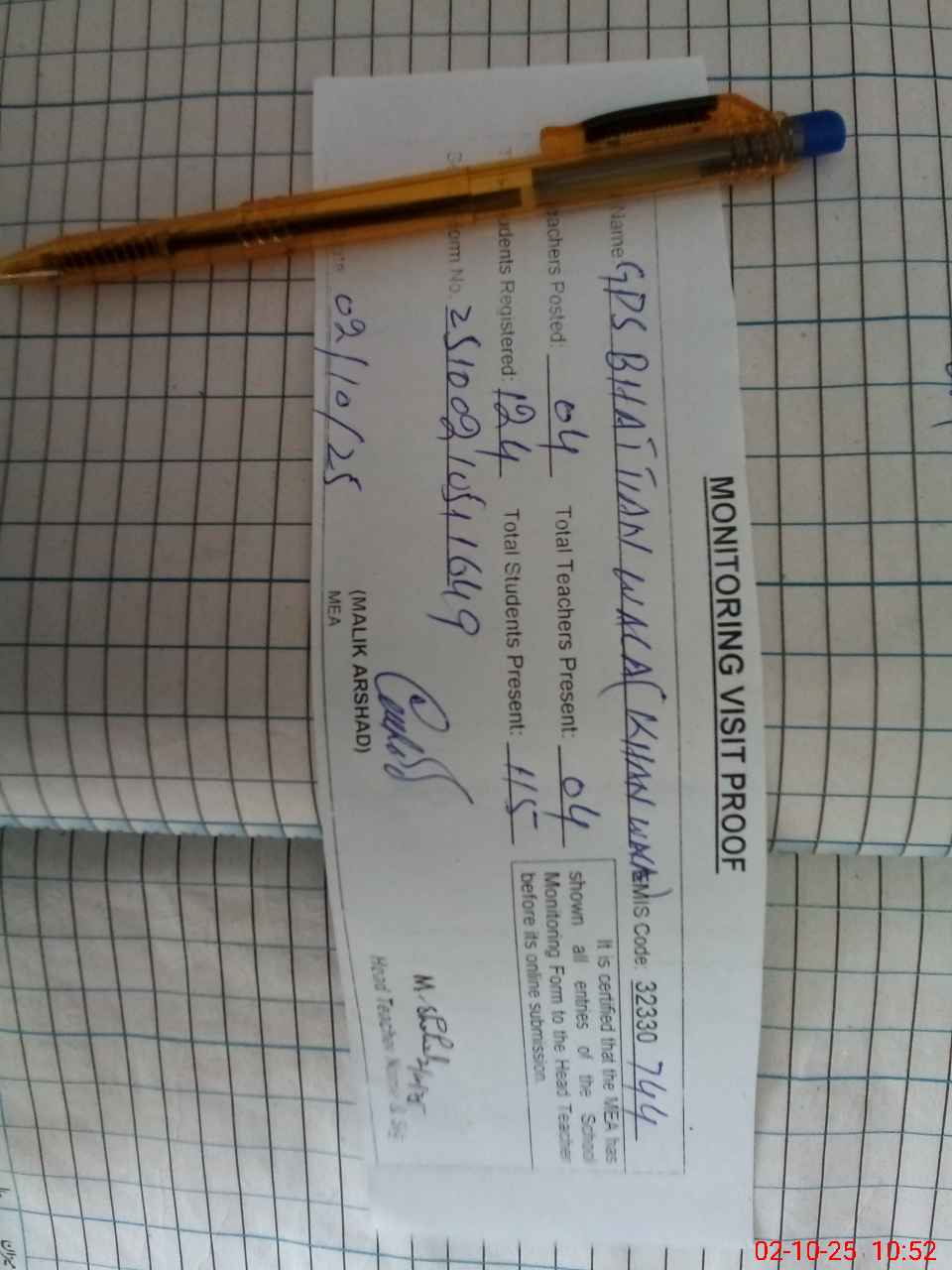 | EMIS Code: 32330744 | Name of School: GPS BHATTIAN WALA (KHAN WALA) | |||