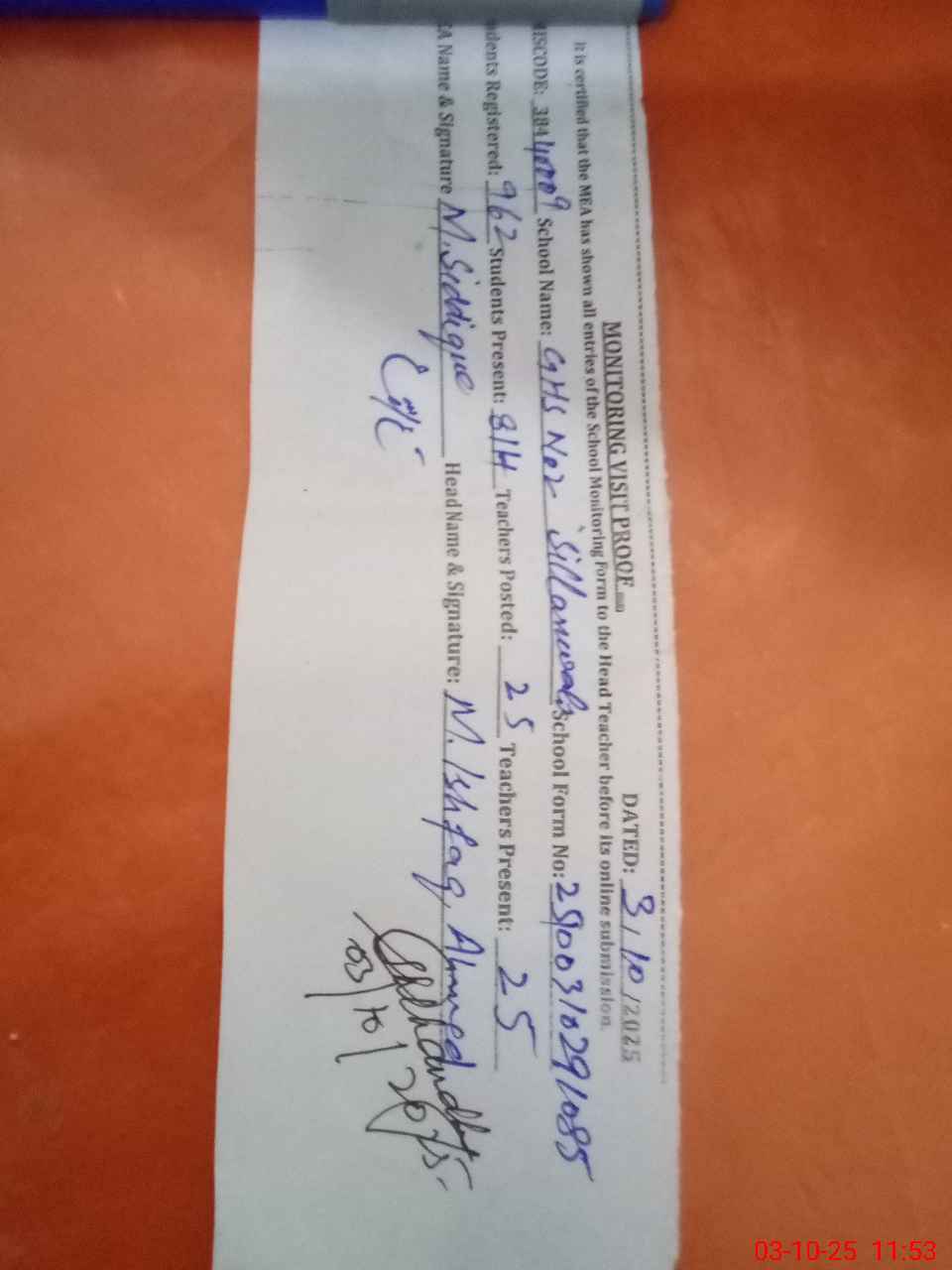 | EMIS Code: 38440009 | Name of School: GHS NO.2 SILLANWALI | |||