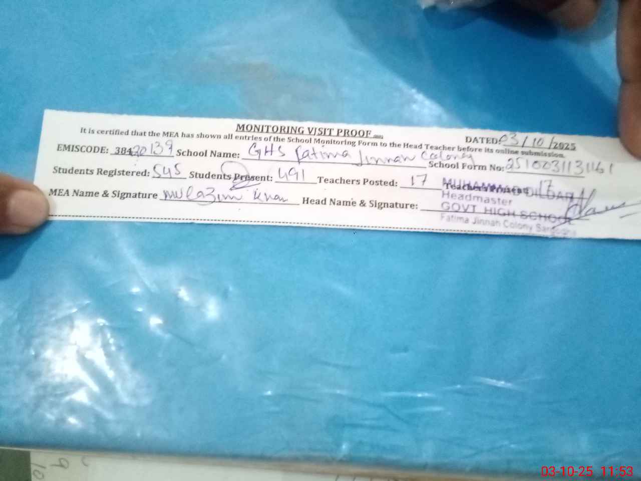 | EMIS Code: 38420139 | Name of School: GHS FATIMA JINNAH COLONY | |||