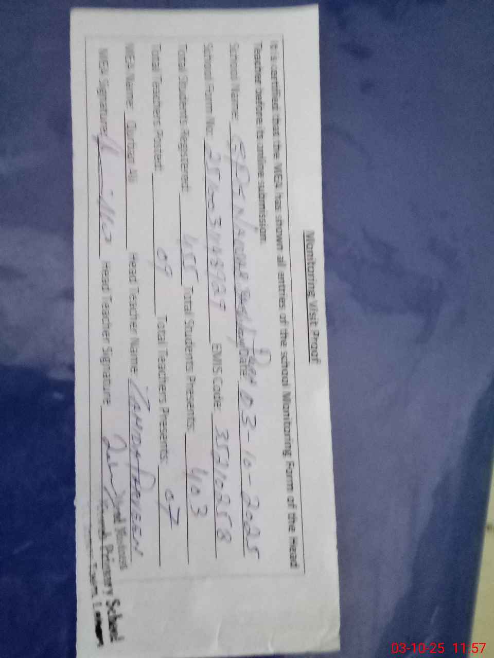 | EMIS Code: 35210258 | Name of School: GPS NAWAB BAGHBAN PURA LAHORE | |||