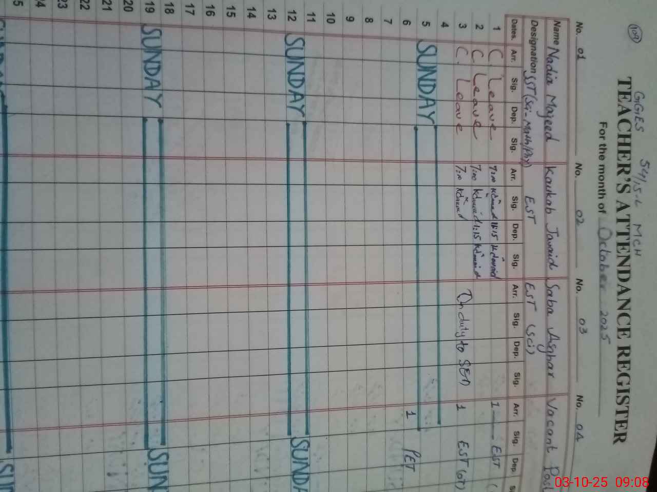 | Name: Ka**** Ja**** Designation: (School Headmaster's/Headmistress's) EST Phone/Cell Number: 03**** |