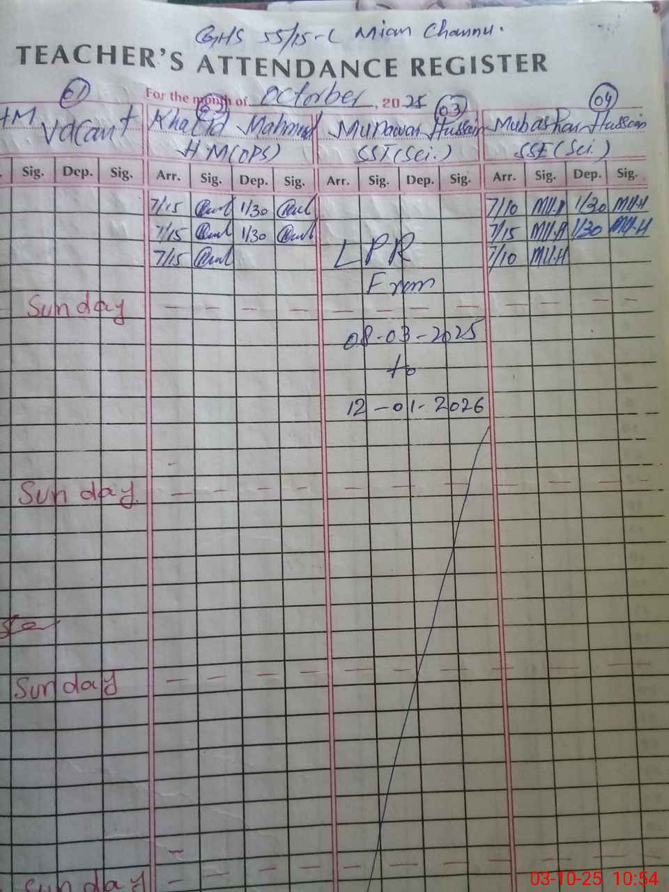 | EMIS Code: 36430057 | Name of School: GHS 55/15-L, MIAN CHANNU | |||