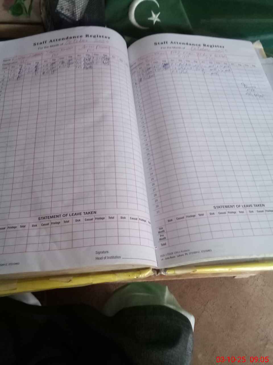 | CNIC | Full Name | Designation | R/C | Absence During Last Calender Month |