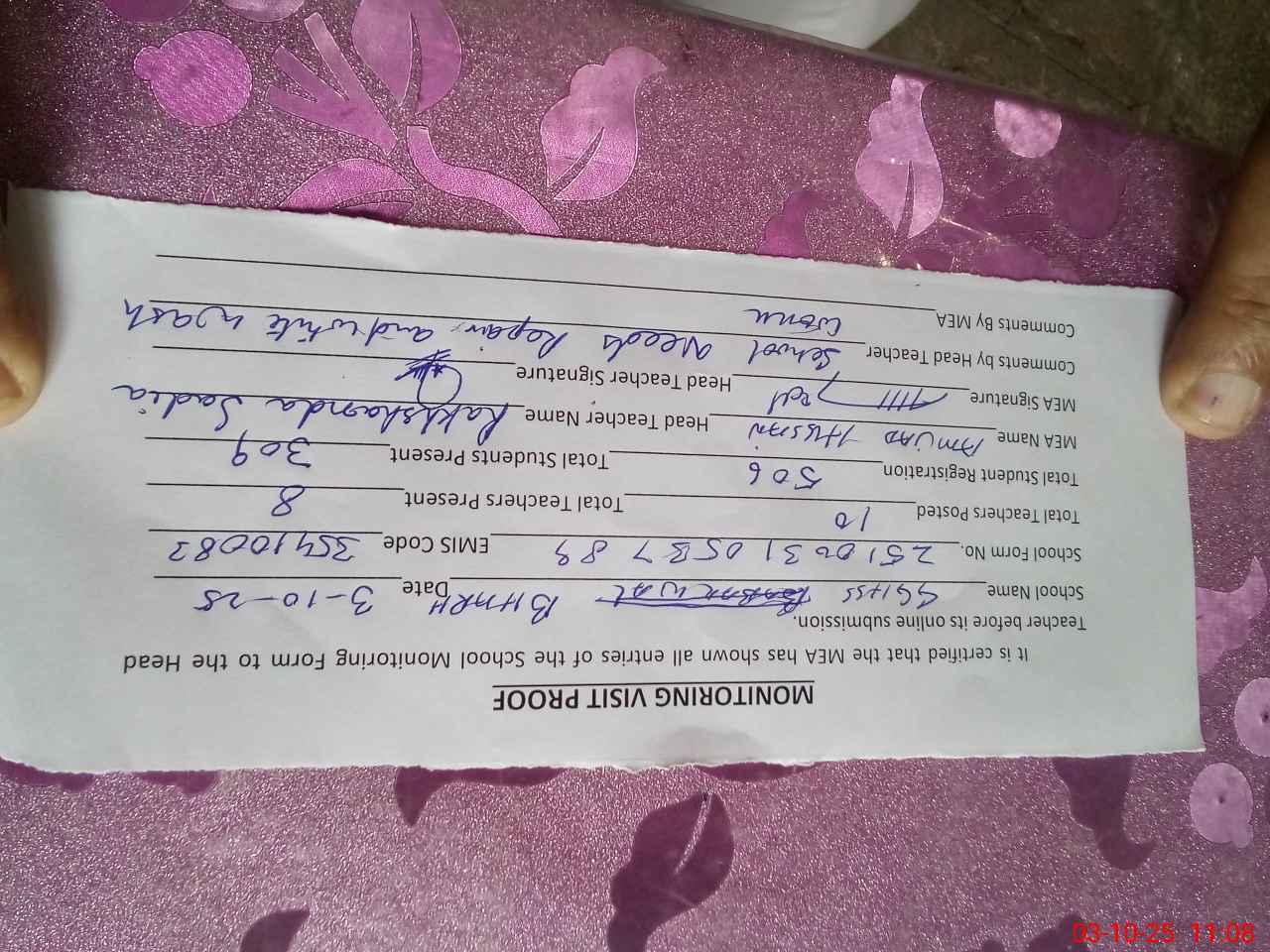 | Certified that this School was Inspected by the Undersigned MEA/DMO Today and the Information Stated Above is as Per Record. | |||||