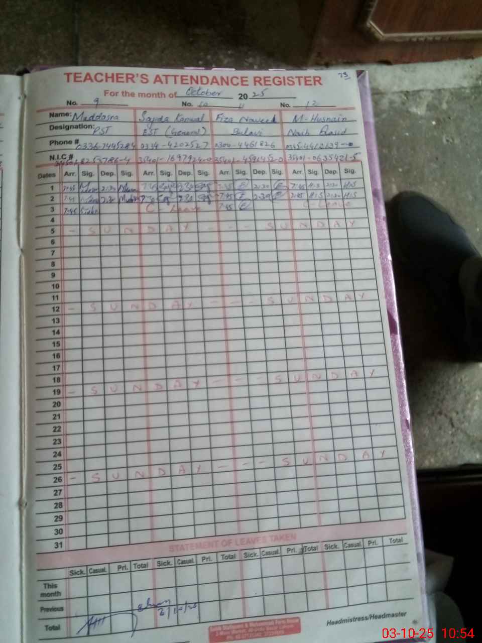 | Name: Bu**** Az**** Designation: (School Headmaster's/Headmistress's) SST Phone/Cell Number: 03**** |