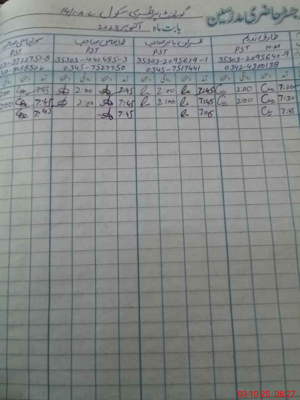 | Name: TA**** NA**** Designation: (School Headmaster's/Headmistress's) PST Phone/Cell Number: 03**** |