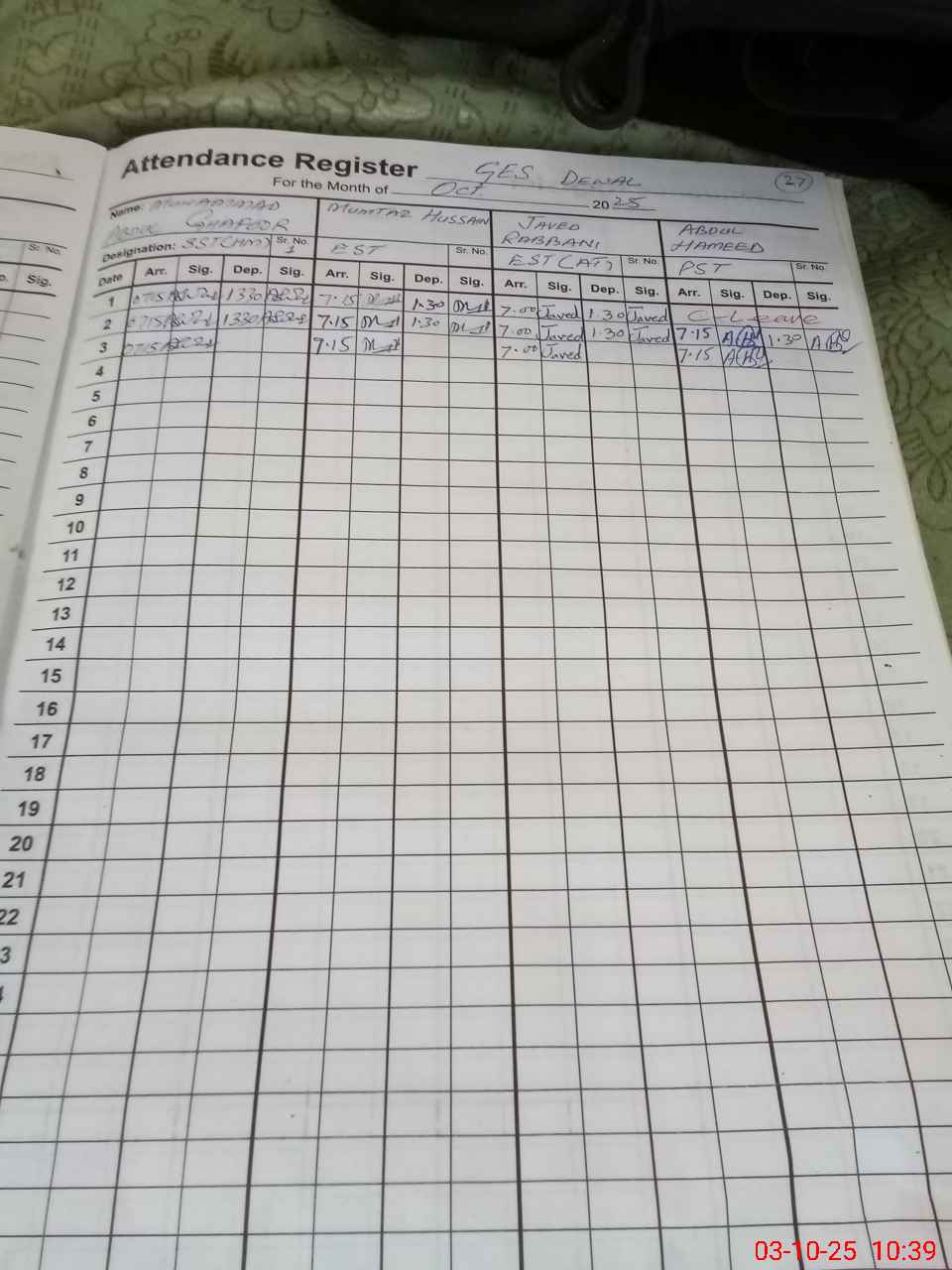 | Monitoring Date: 03-10-2025 | Start Time: 03-10-2025 09:52 AM | End Time: 03-10-2025 10:44 AM | Name of MEA: Im**** Ha**** | |