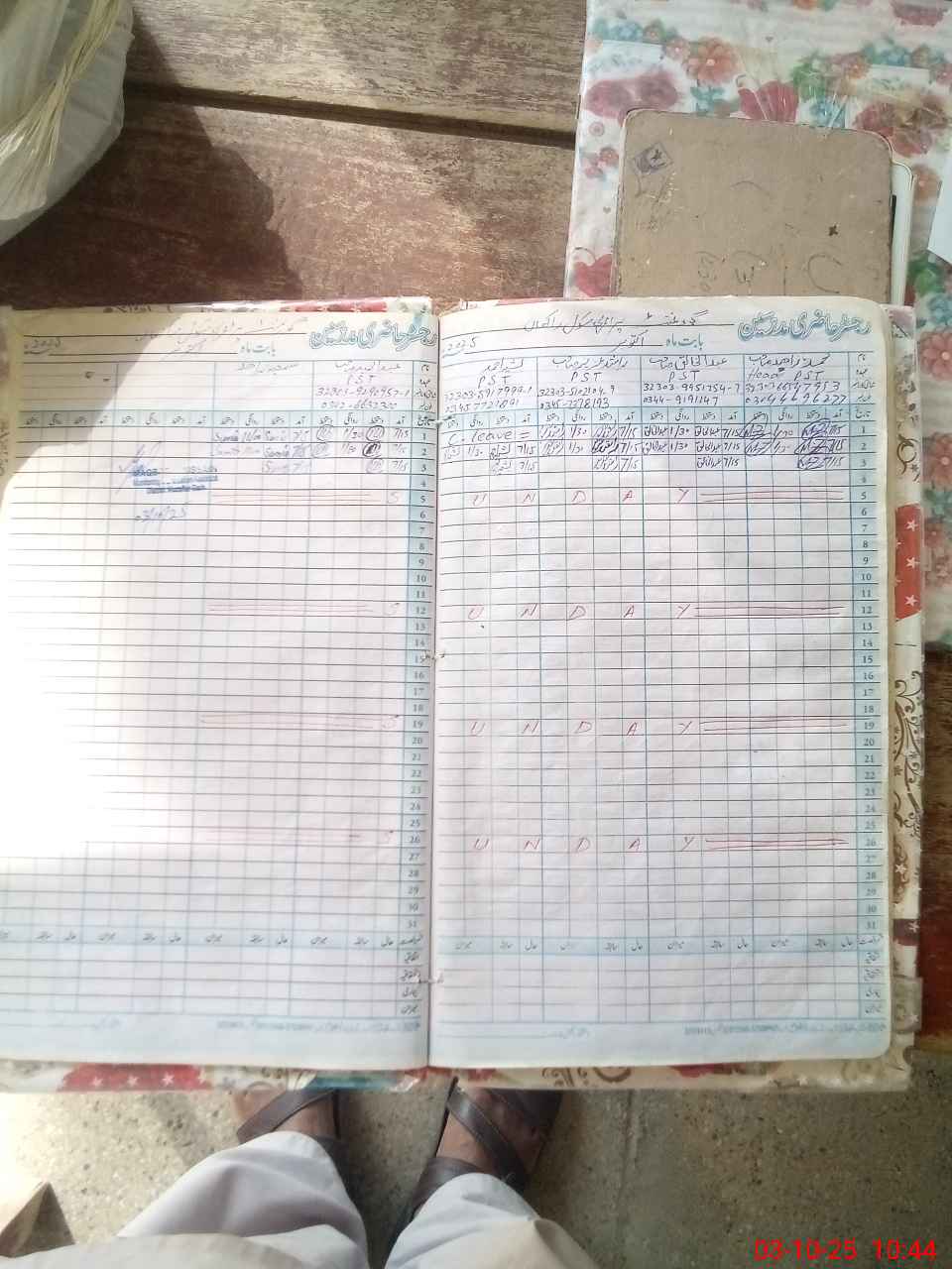 | CNIC | Full Name | Designation | R/C | Absence During Last Calender Month |