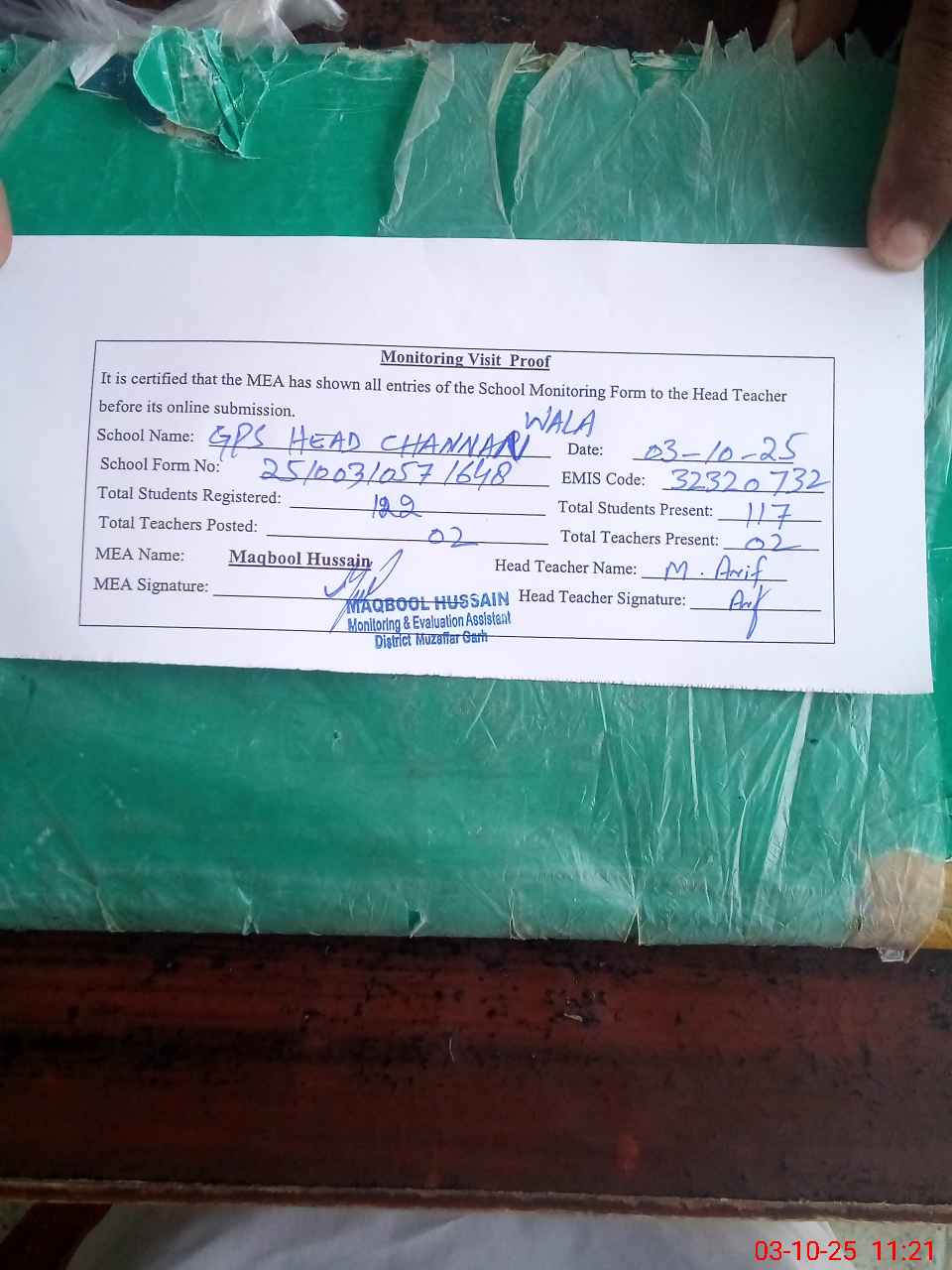 | EMIS Code: 32320732 | Name of School: GPS HEAD CHANNAN WALA | |||