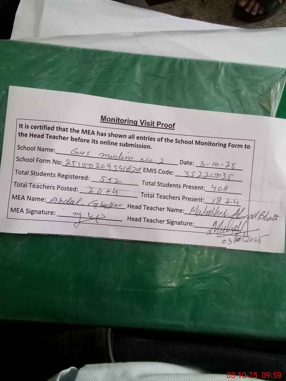 | EMIS Code: 35220035 | Name of School: GHS MUSLIM NO.2 CIVIL LINES | |||