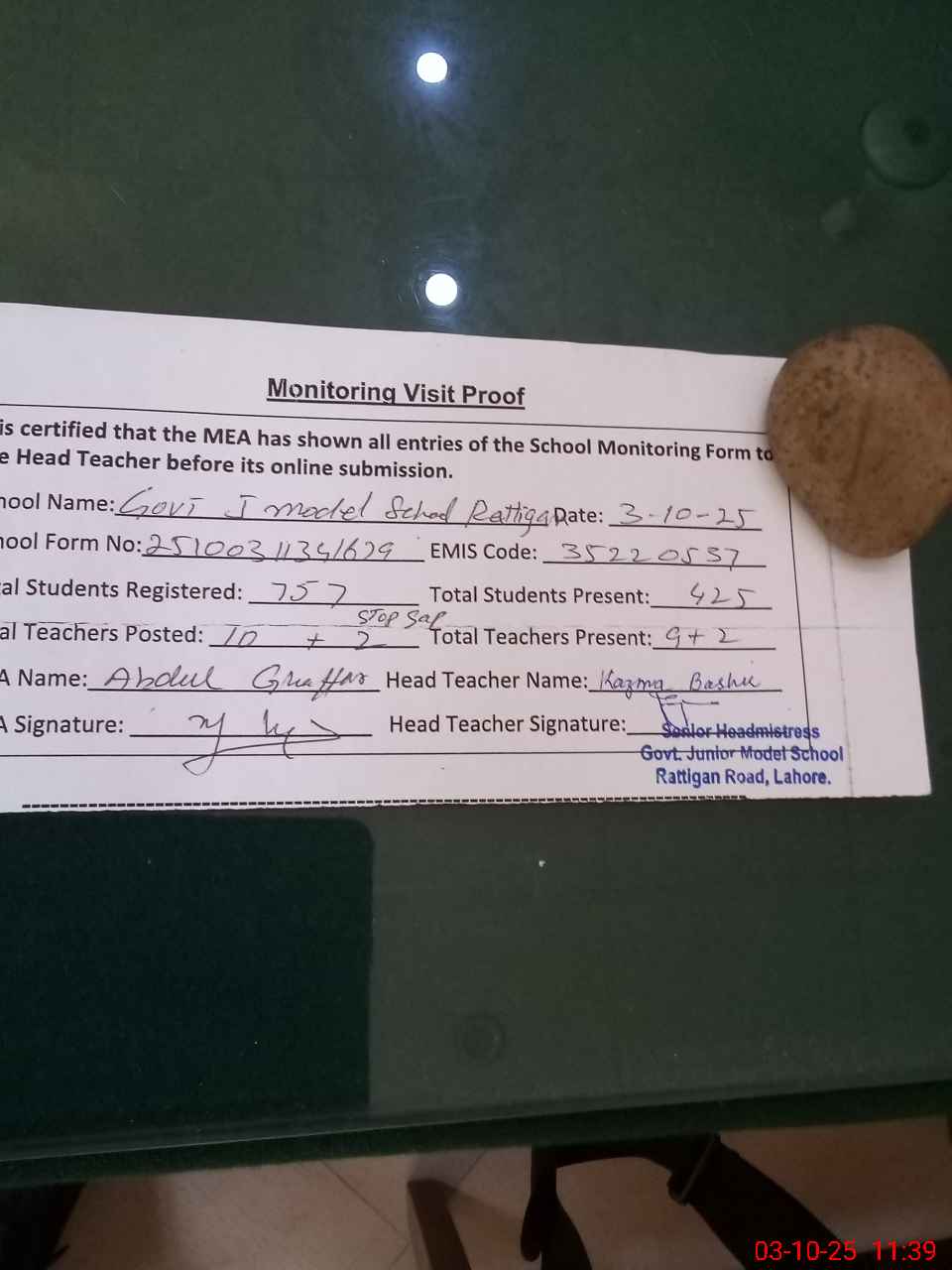 | EMIS Code: 35220537 | Name of School: GOVT. JUNIOR MODEL SCHOOL RATTIGAN ROAD LHR | |||