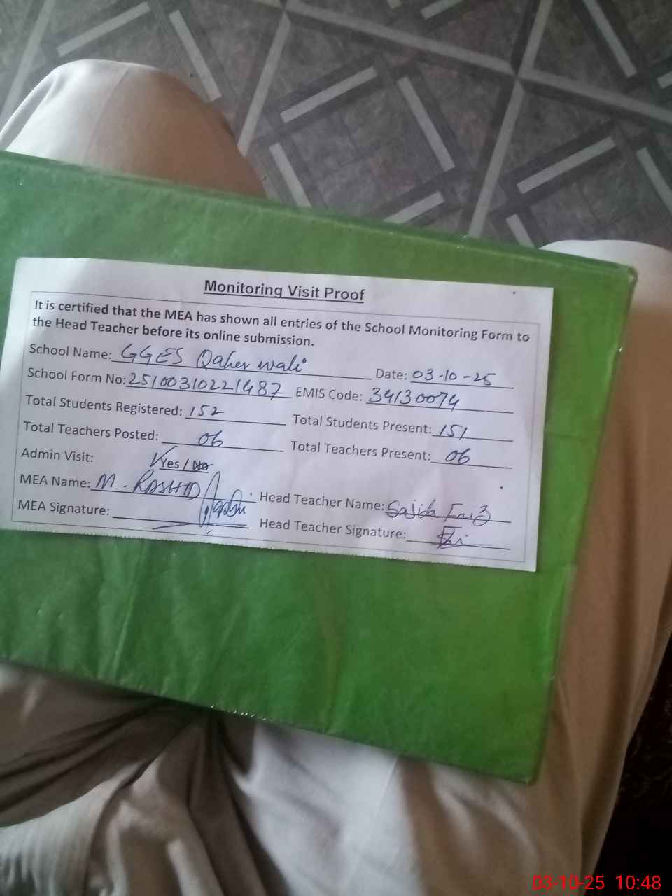 | EMIS Code: 34130074 | Name of School: GGES QAHER WALI | |||