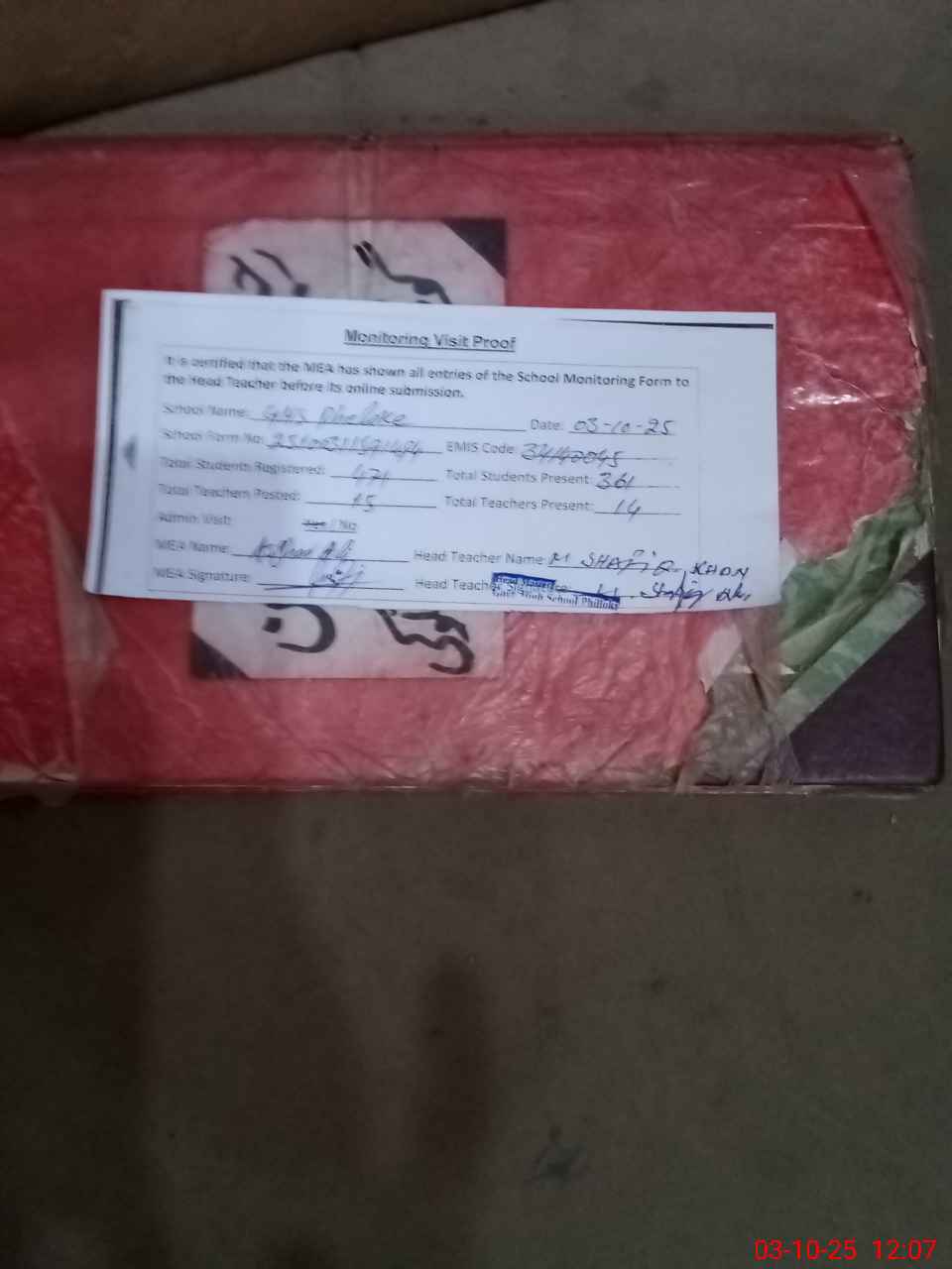 | Certified that this School was Inspected by the Undersigned MEA/DMO Today and the Information Stated Above is as Per Record. | |||||
