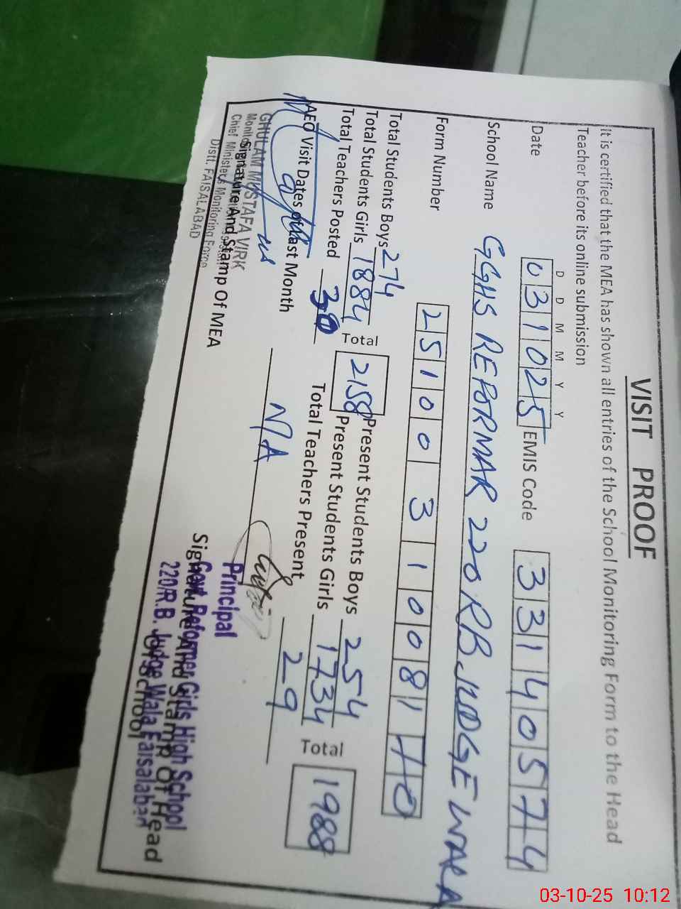 | Certified that this School was Inspected by the Undersigned MEA/DMO Today and the Information Stated Above is as Per Record. | |||||