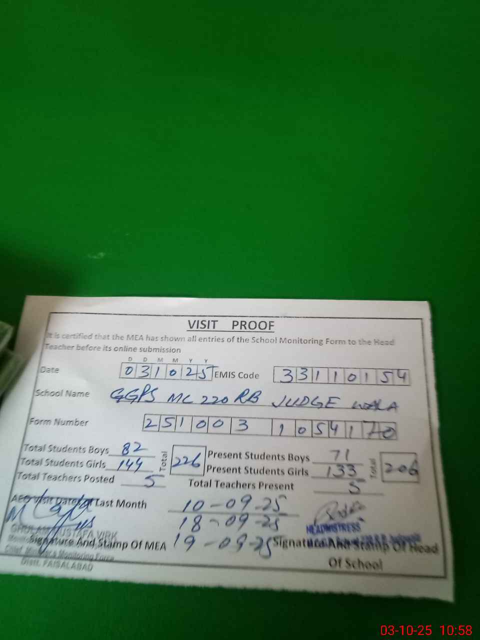 | Certified that this School was Inspected by the Undersigned MEA/DMO Today and the Information Stated Above is as Per Record. | |||||