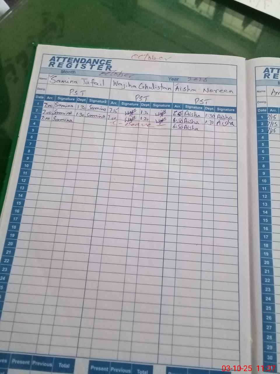 | 33**** | Ad**** Ra**** | NQ | Regular | 0 | 0 | 30 | 0 | 0 | 0 | 0 | 0 | 0 | Absent (Un-Authorized) |