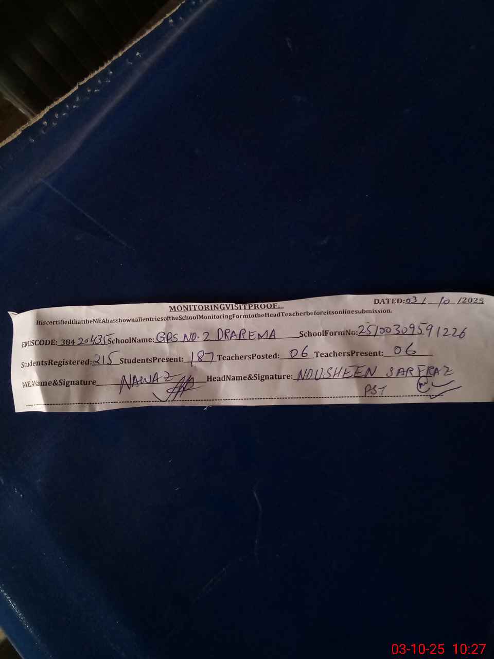 | EMIS Code: 38420435 | Name of School: GPS NO.2 DHAREMA | |||