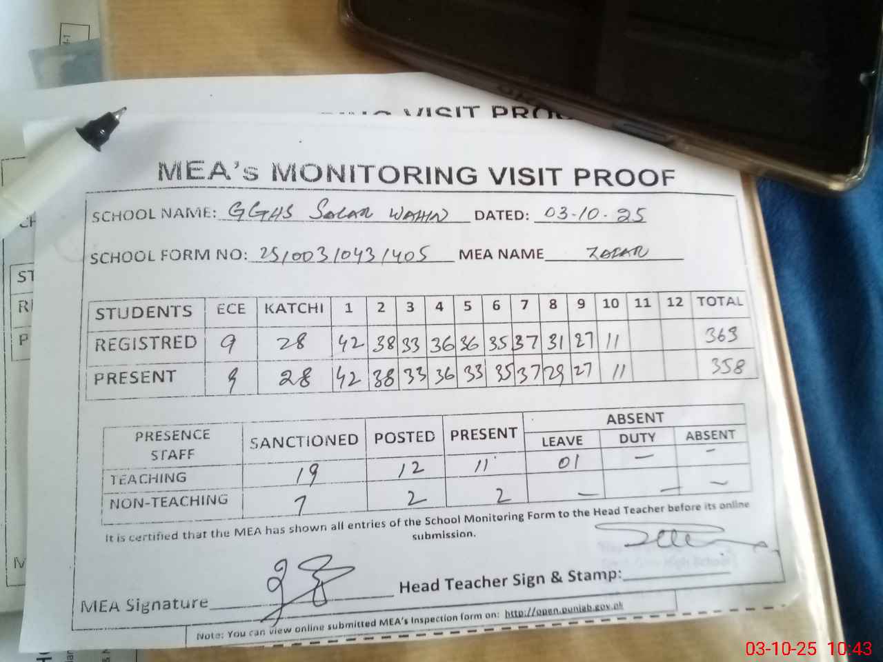 | EMIS Code: 36410489 | Name of School: GGHS SALAR WAHIN KOHNA NAWAN SHEHR | |||