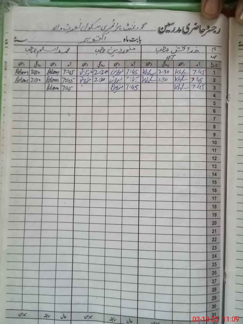 | Name: KH**** BA**** Designation: (School Headmaster's/Headmistress's) PST Phone/Cell Number: 03**** |