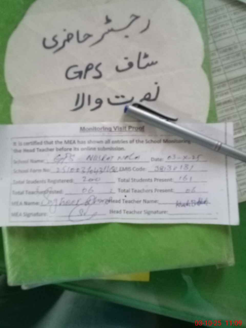 | EMIS Code: 38130131 | Name of School: GPS NUSRAT WALA | |||
