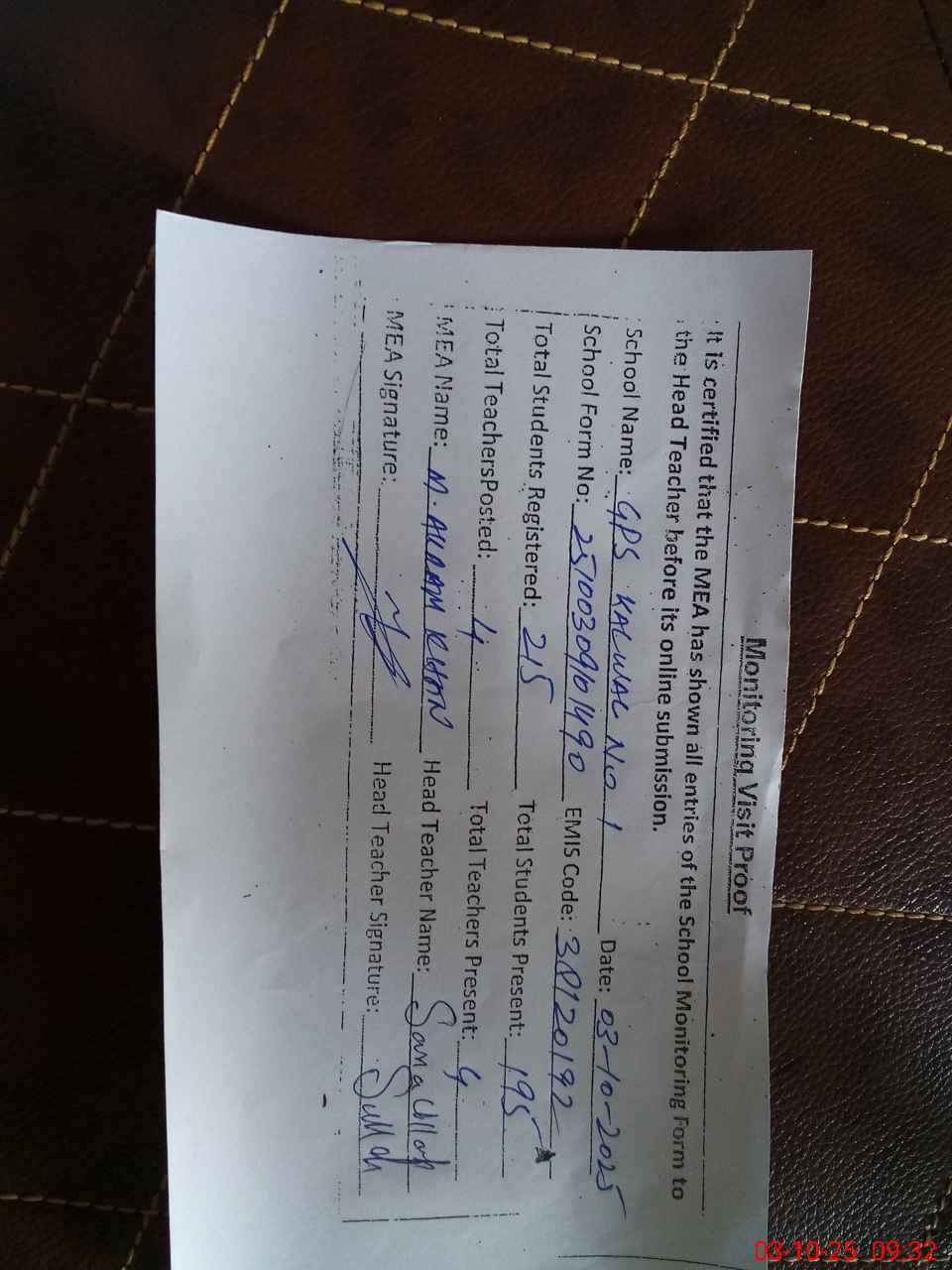 | EMIS Code: 38120192 | Name of School: GPS KALWAL NO 1 | |||