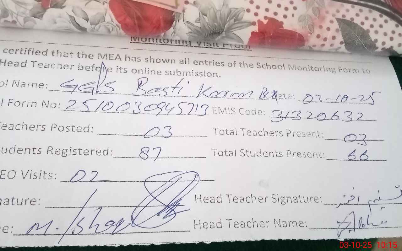 | EMIS Code: 31320632 | Name of School: GGPS BASTI KAREEM BUKHSH | |||