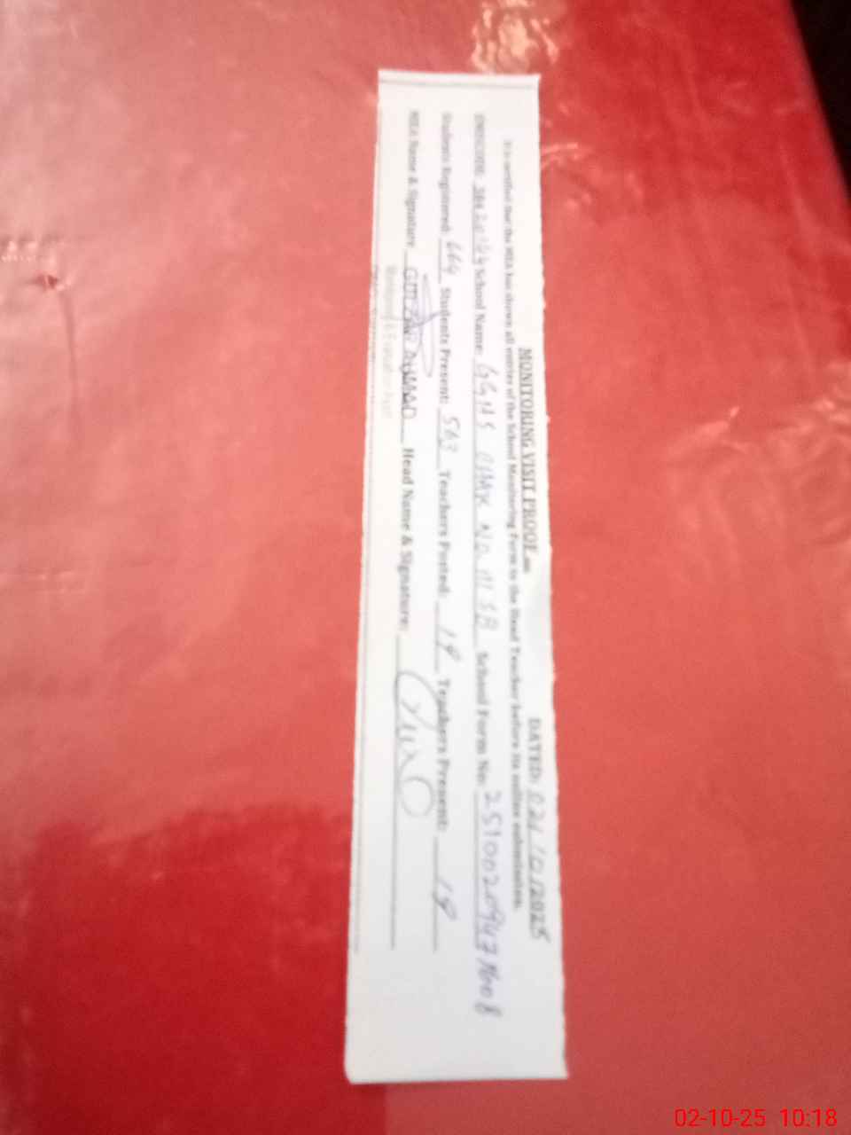 | Attendance Register | Head Teacher | MEA with School | Visit Proof |