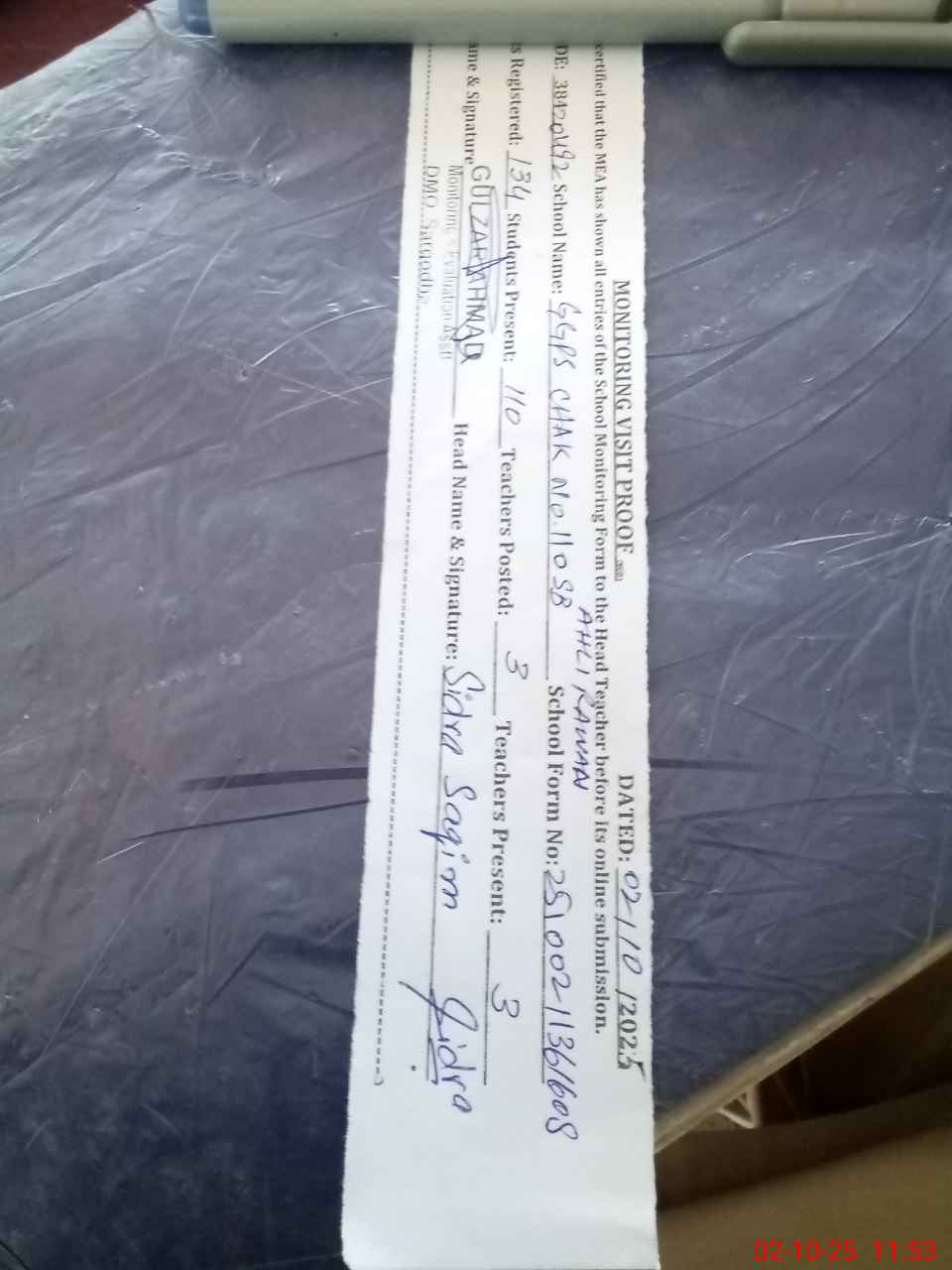 | EMIS Code: 38420492 | Name of School: GGPS CHAK NO.110 SB AHALI RAWANA | |||