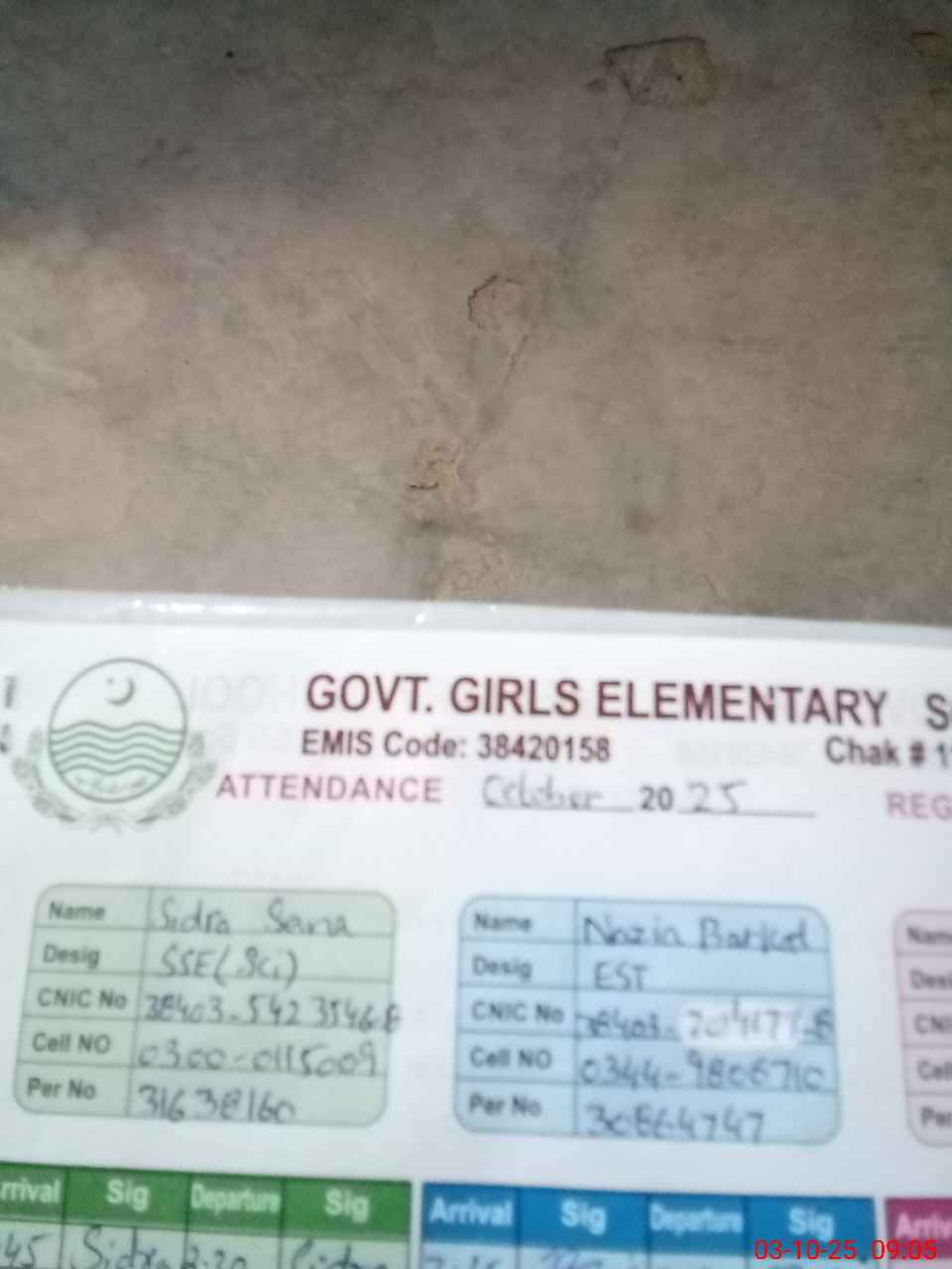 | Name: Si**** Sa**** Designation: (School Headmaster's/Headmistress's) SSE Sci Phone/Cell Number: 03**** |