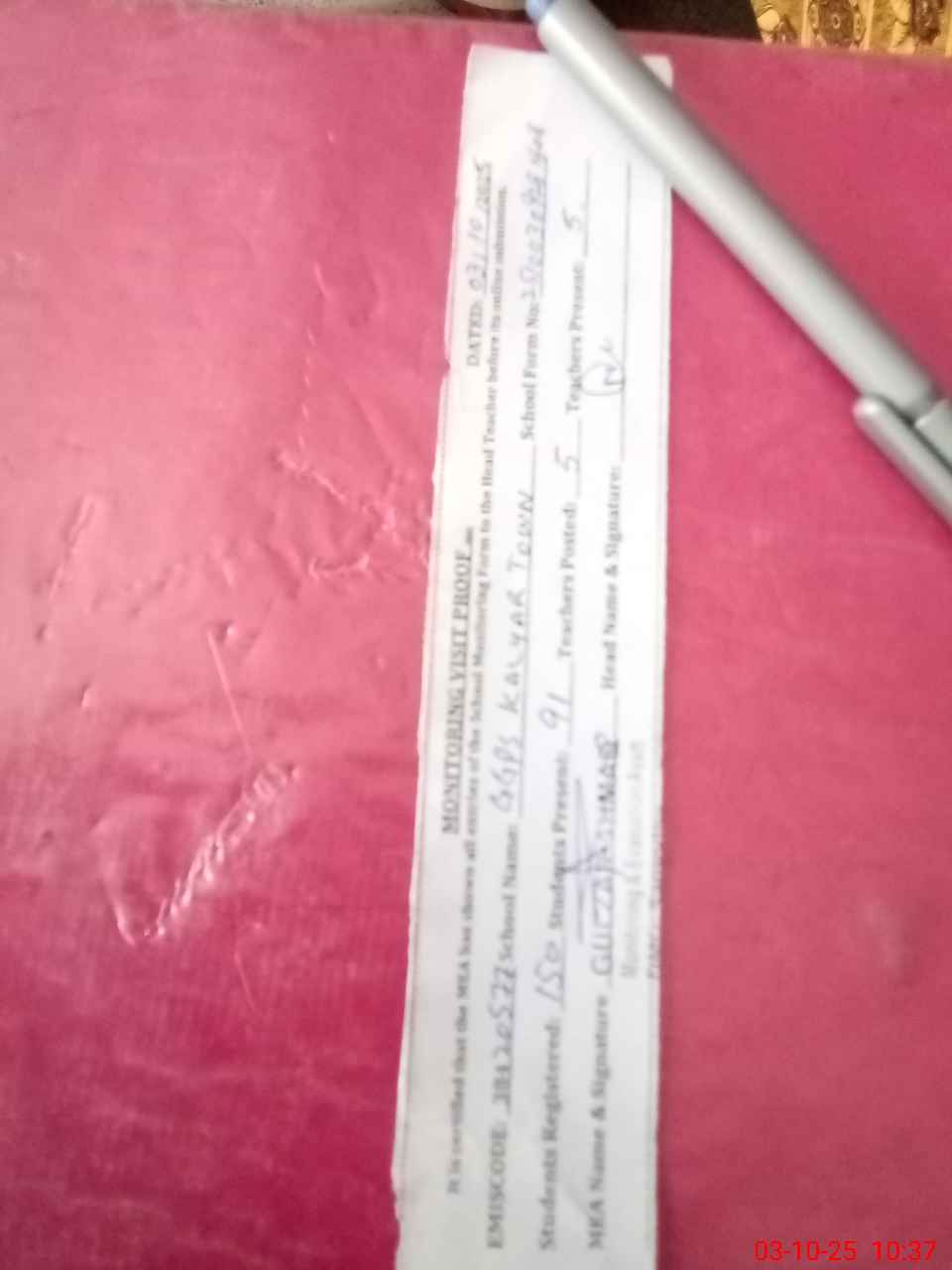 | Attendance Register | Head Teacher | MEA with School | Visit Proof |
