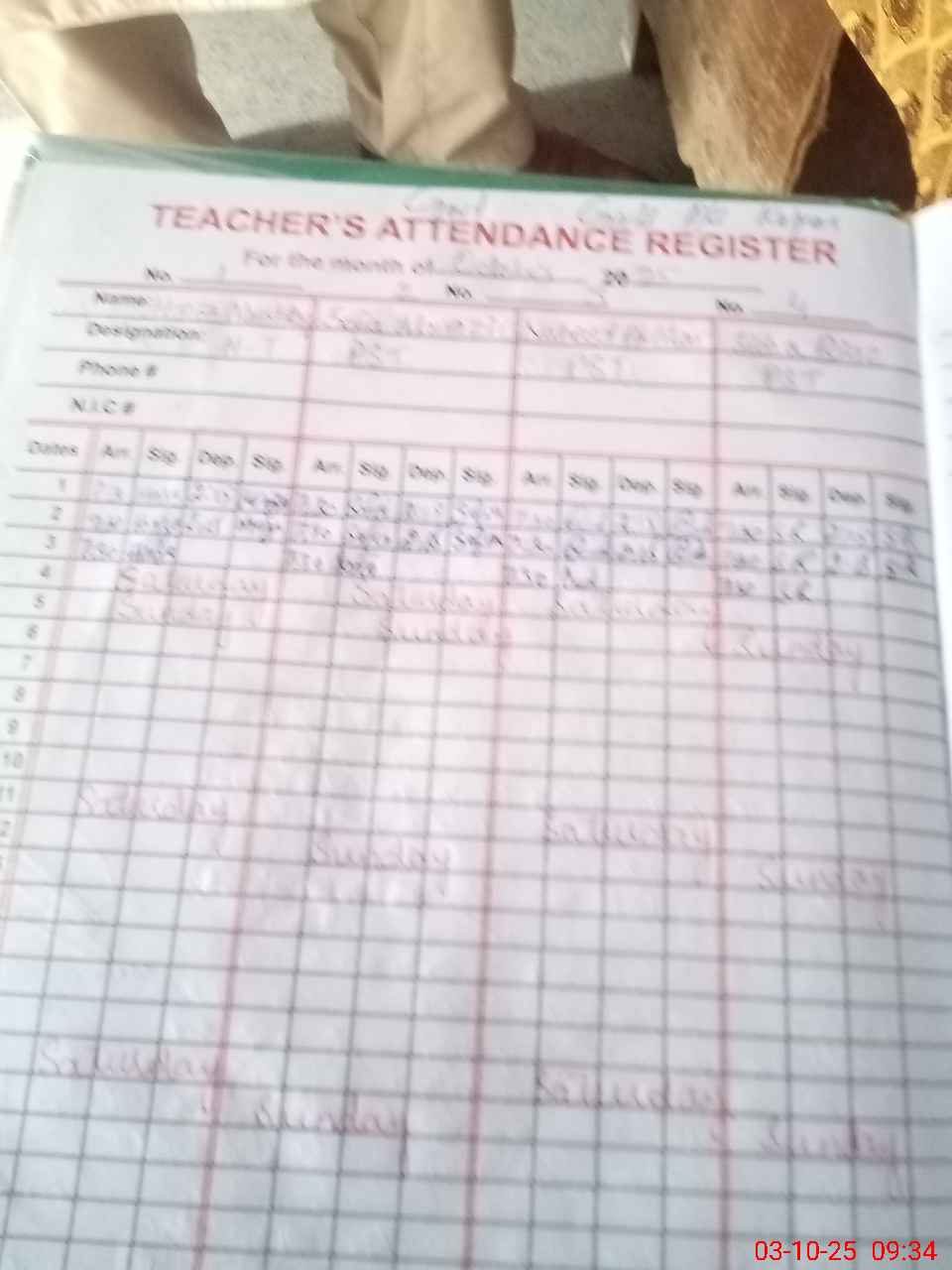 | Name: HI**** MU**** Designation: (School Headmaster's/Headmistress's) PST Phone/Cell Number: 03**** |