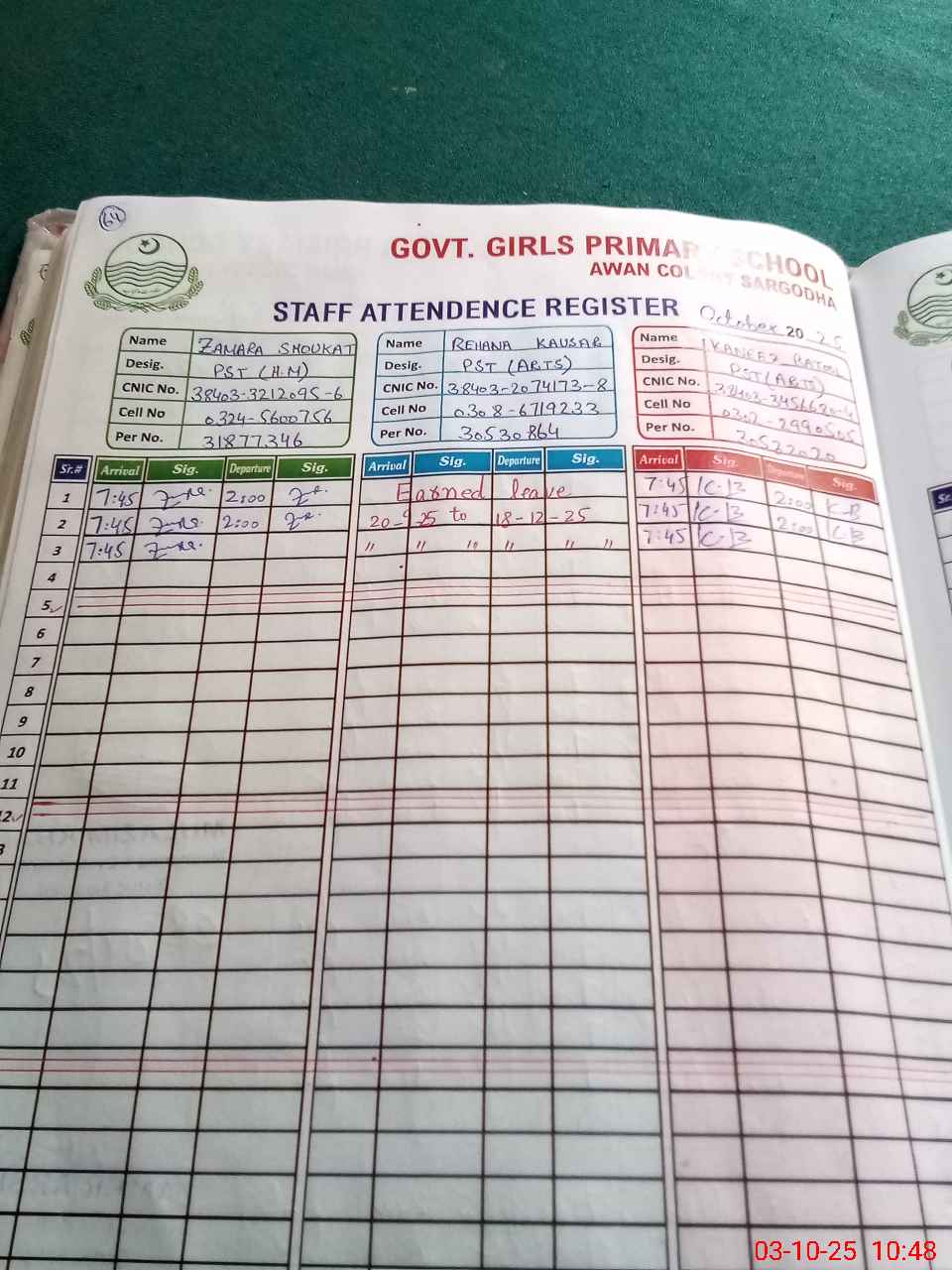 | Name: ZA**** SH**** Designation: (School Headmaster's/Headmistress's) PST Phone/Cell Number: 03**** |