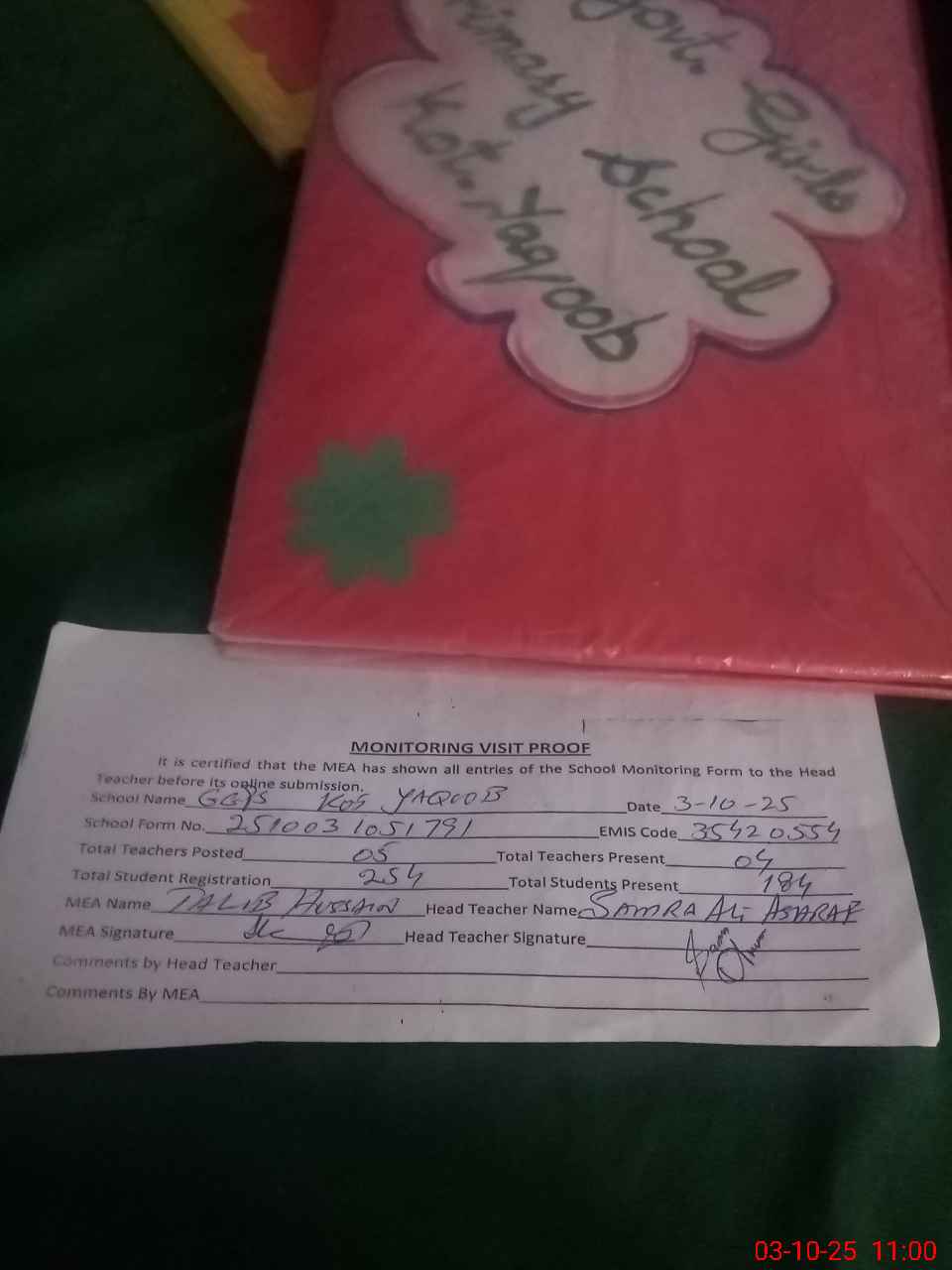 | EMIS Code: 35420554 | Name of School: GGPS KOT YAQOOB | |||