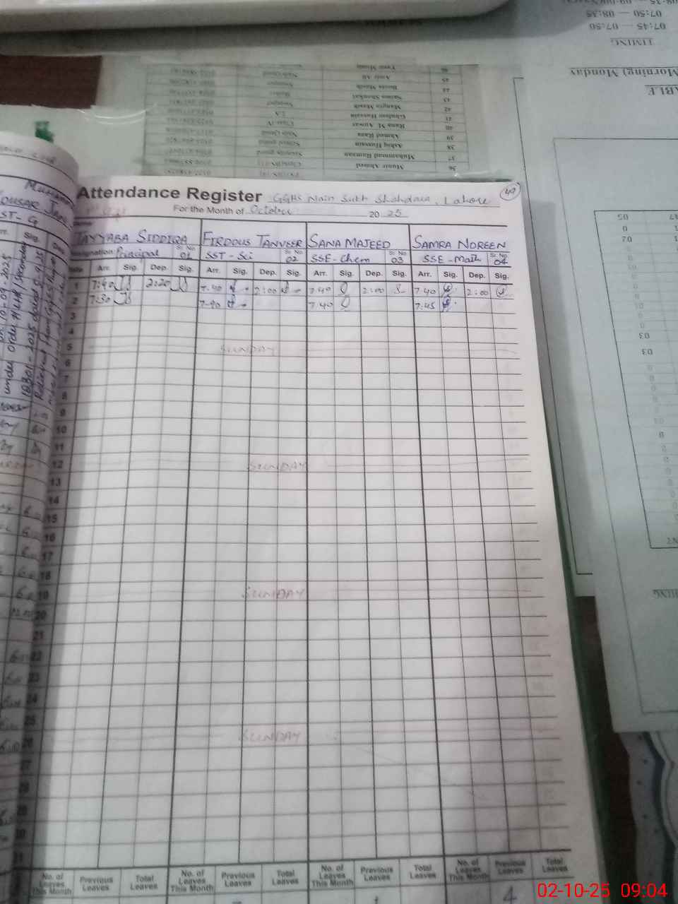 | CNIC | Full Name | Designation | R/C | Absence During Last Calender Month |