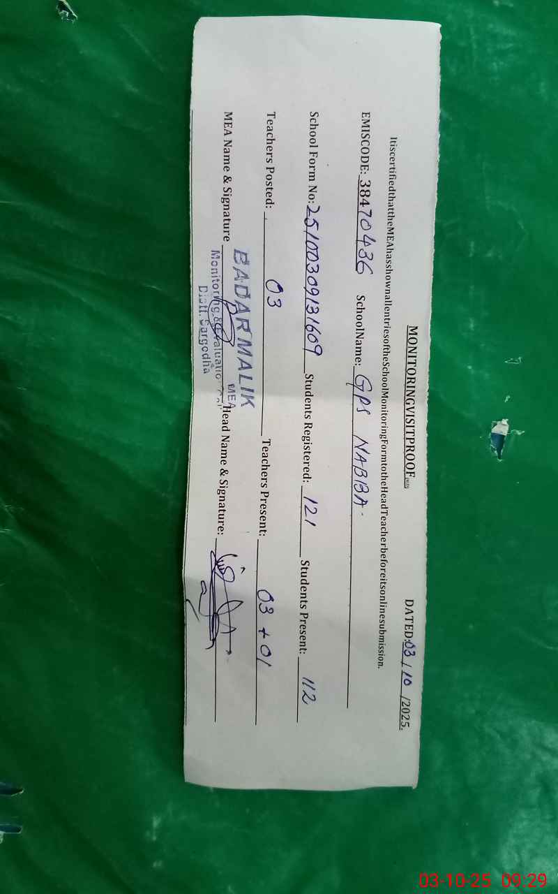 | EMIS Code: 38470436 | Name of School: GPS NABBA | |||