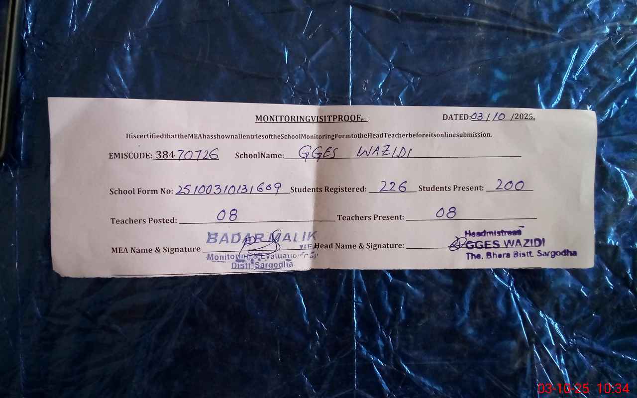 | EMIS Code: 38470726 | Name of School: GGES WAZIDI | |||