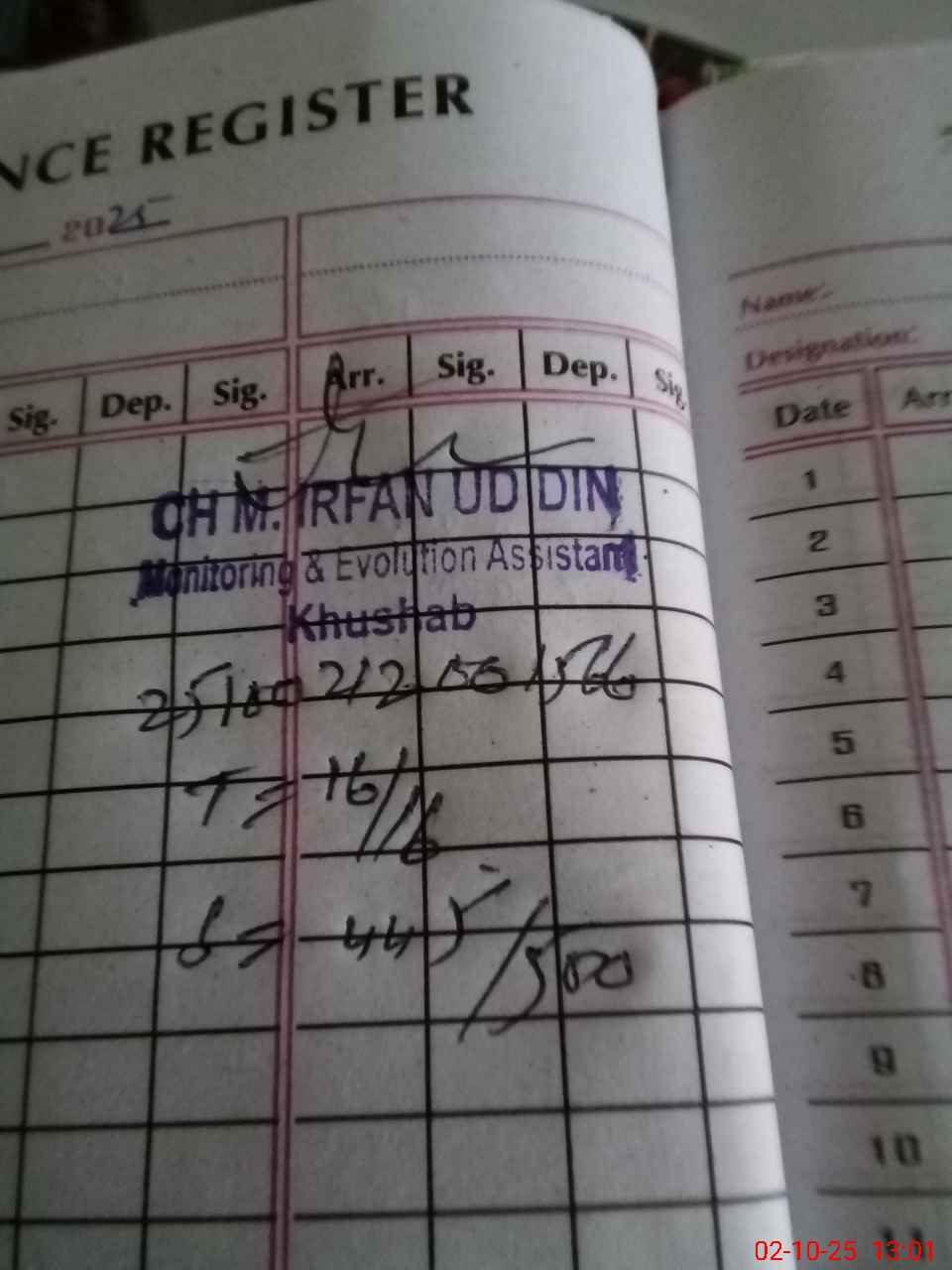 | Sr.No. | Visit Date | Designation | ||