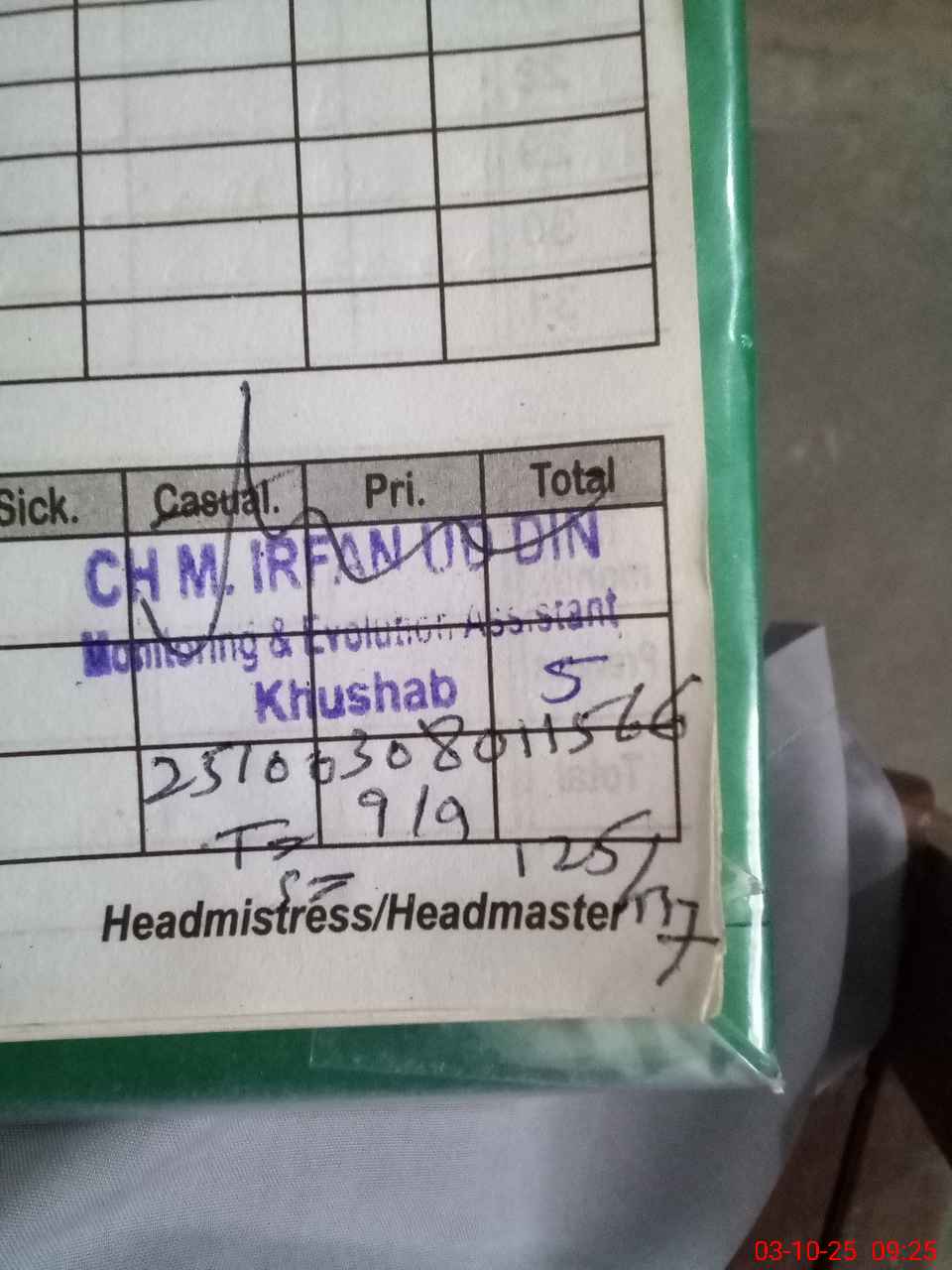 | Name: Ha**** Ra**** Designation: (School Headmaster's/Headmistress's) EST Phone/Cell Number: 03**** |