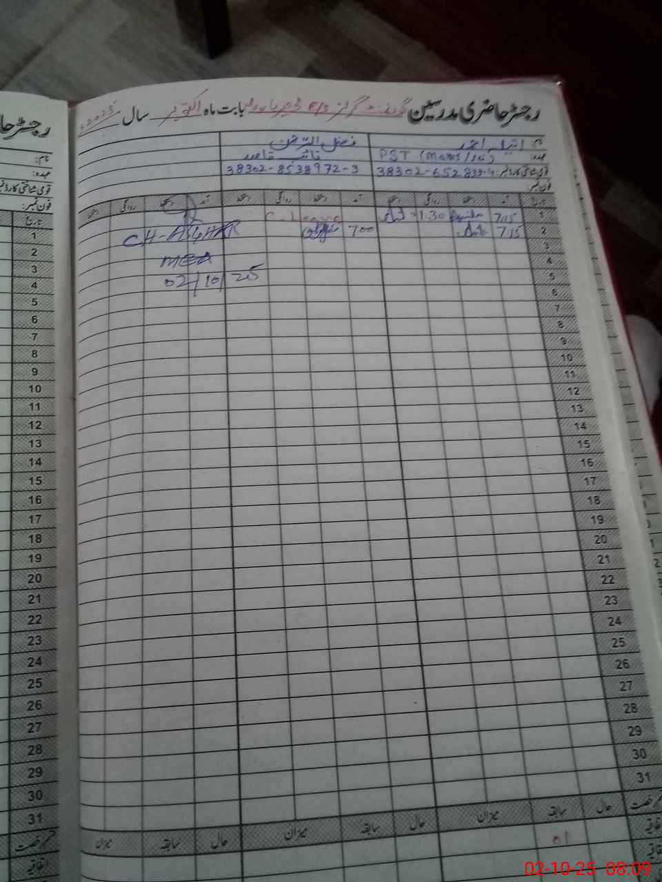 | Name: Sa**** Na**** Designation: (School Headmaster's/Headmistress's) Sst Phone/Cell Number: 03**** |