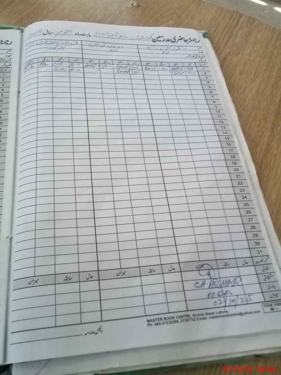 | CNIC | Full Name | Designation | R/C | Absence During Last Calender Month |