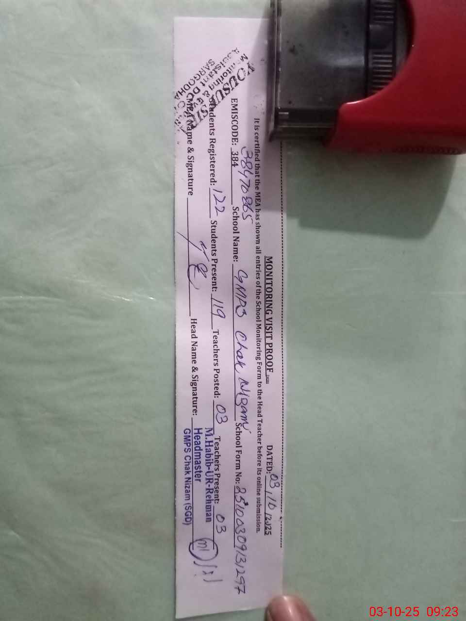 | EMIS Code: 38470865 | Name of School: GMPS CHAK NO.2 NIZAM | |||