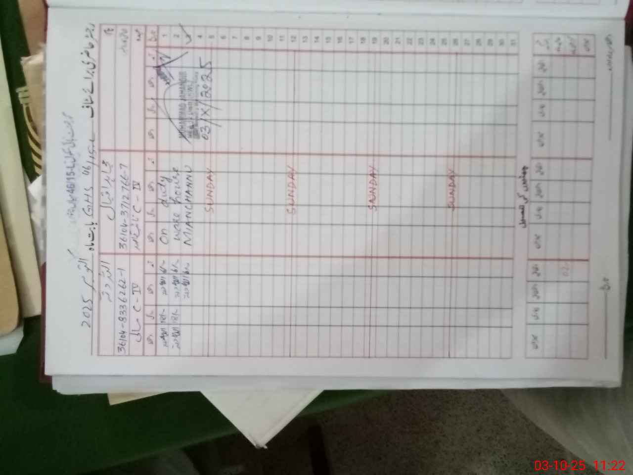 | CNIC | Full Name | Designation | R/C | Absence During Last Calender Month |