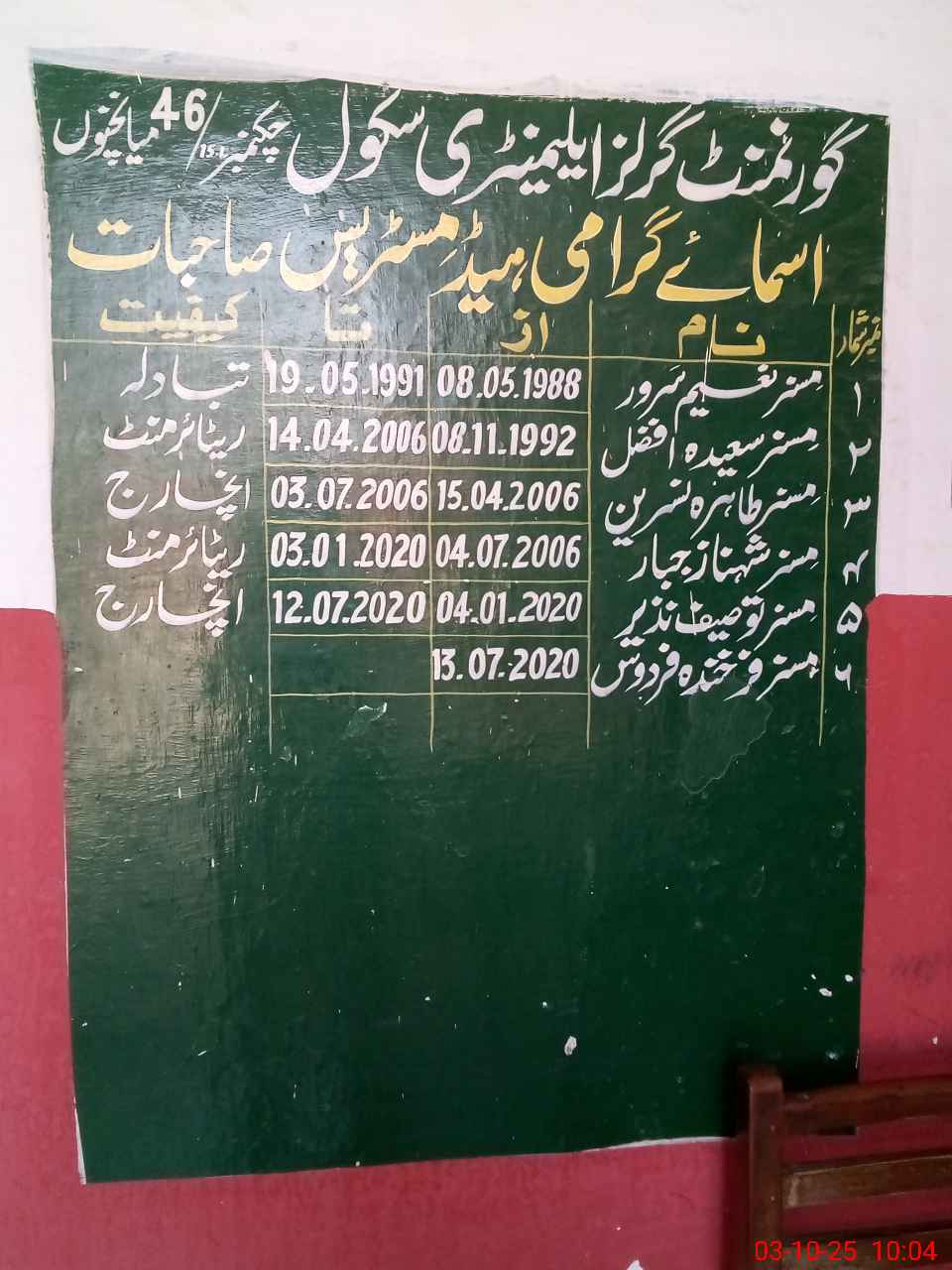 | Name: Fa**** Fi**** Designation: (School Headmaster's/Headmistress's) SST (G) Phone/Cell Number: 03**** |