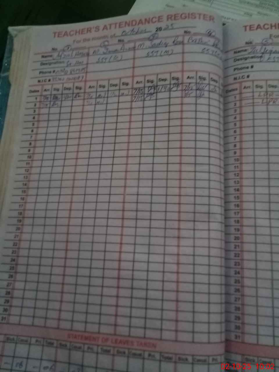 | CNIC | Full Name | Designation | R/C | Absence During Last Calender Month |