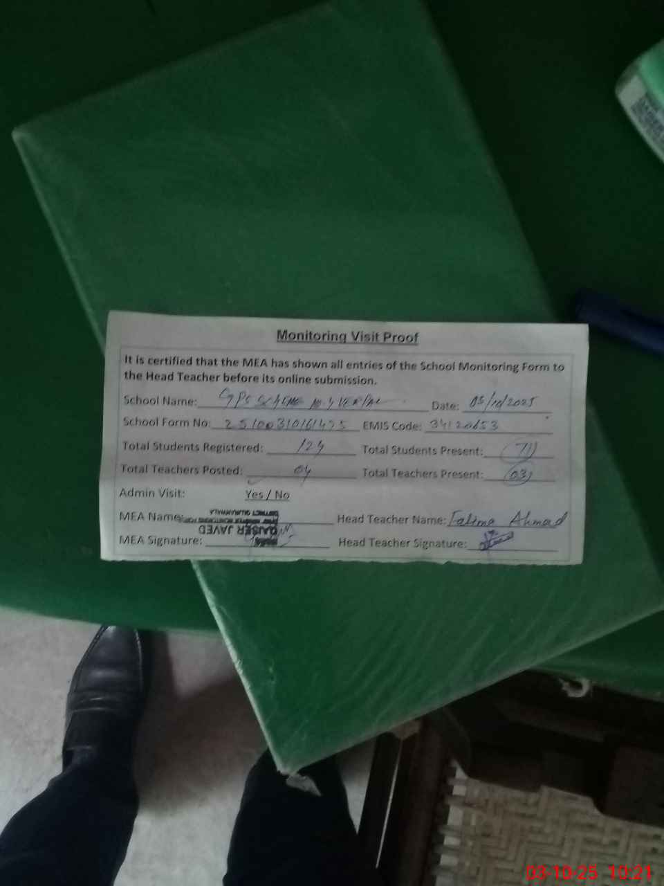 | EMIS Code: 34120653 | Name of School: GPS SCHEME NO.04 VERPAL KHURD | |||