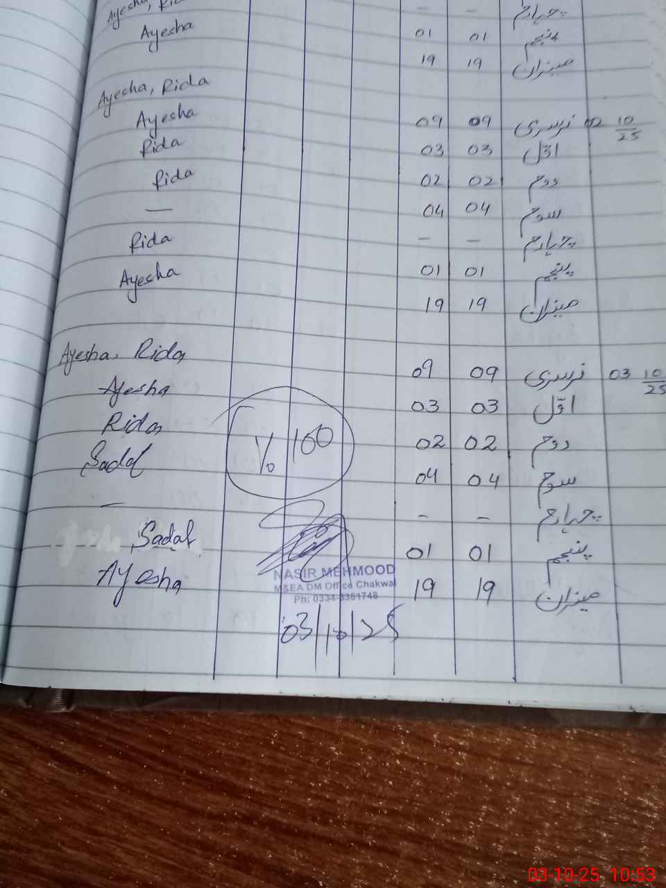 | Name: AY**** MA**** Designation: (School Headmaster's/Headmistress's) HEADMISTRESS Phone/Cell Number: 03**** |