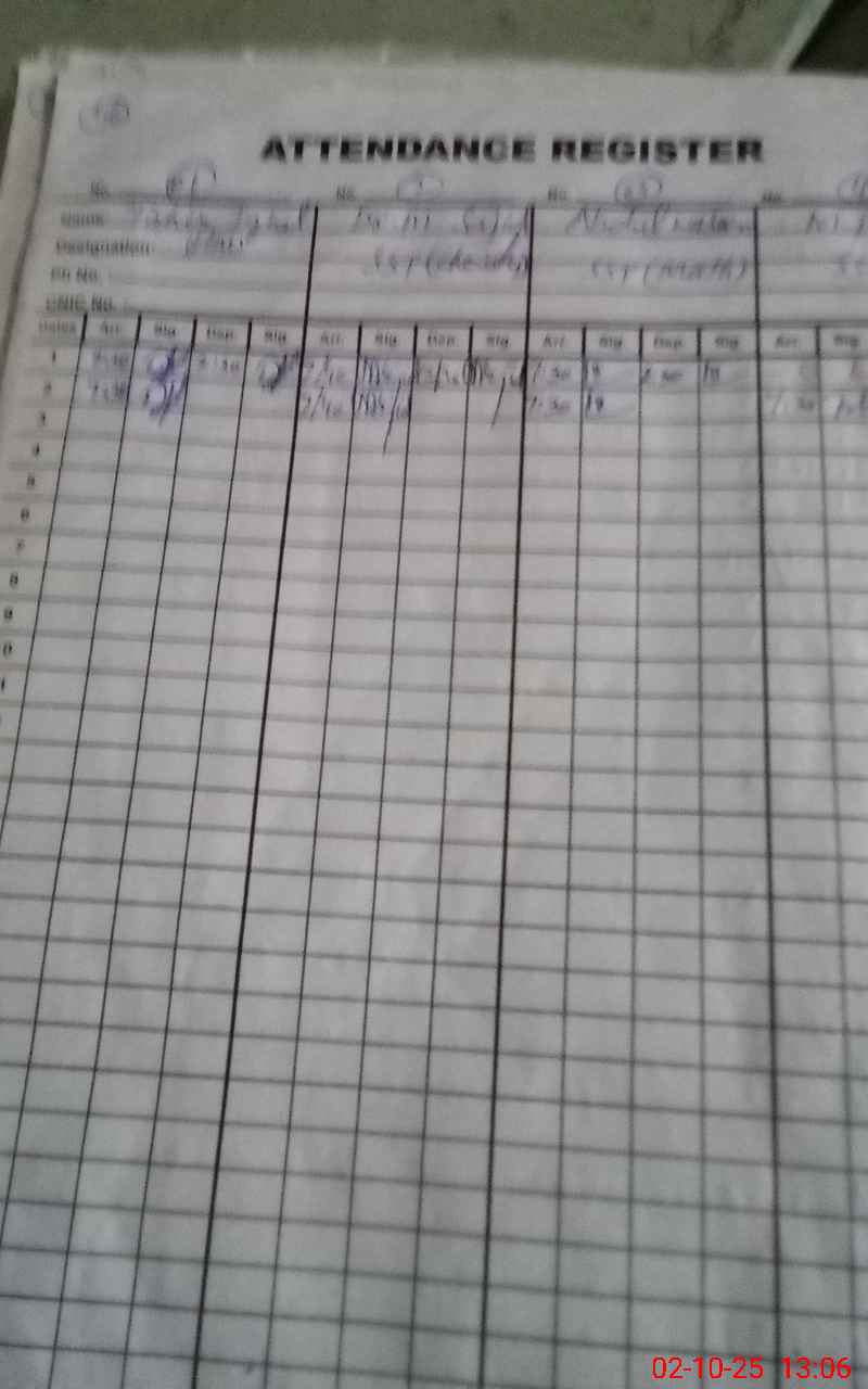 | CNIC | Full Name | Designation | R/C | Absence during last cal. month |