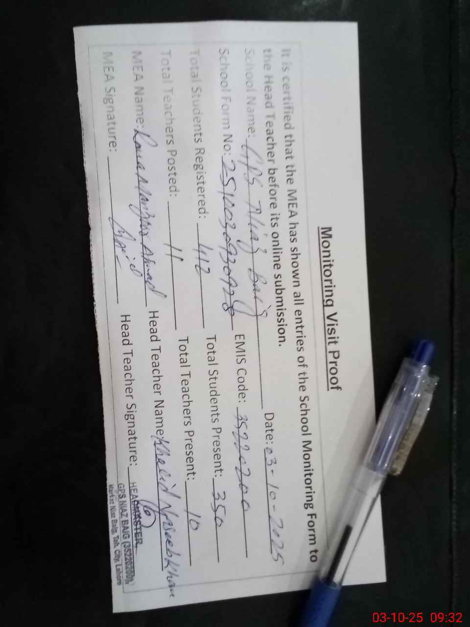 | Certified that this School was Inspected by the Undersigned MEA/DMO Today and the Information Stated Above is as Per Record. | |||||