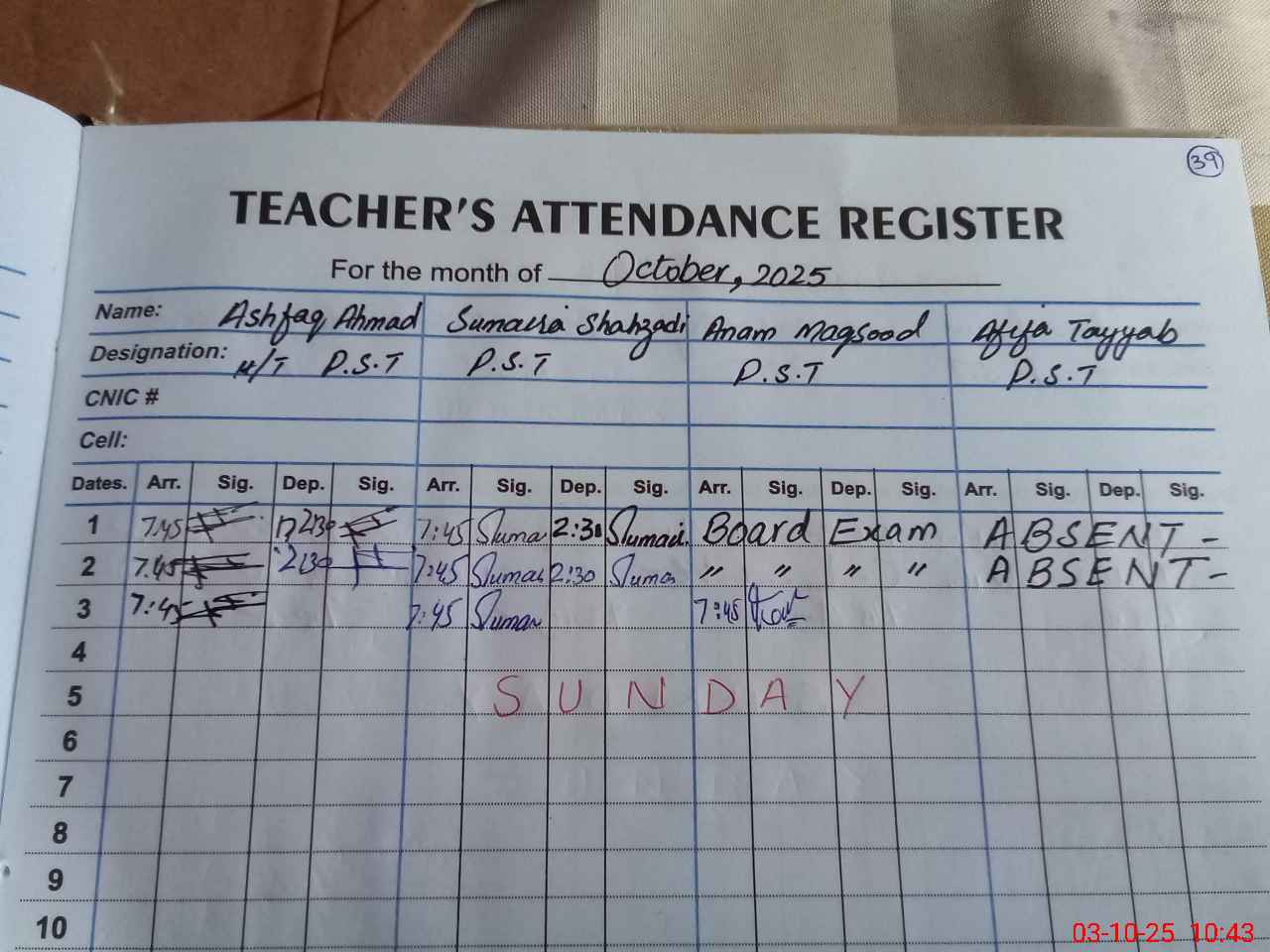 | Name: AS**** AH**** Designation: (School Headmaster's/Headmistress's) Head Master Phone/Cell Number: 03**** |