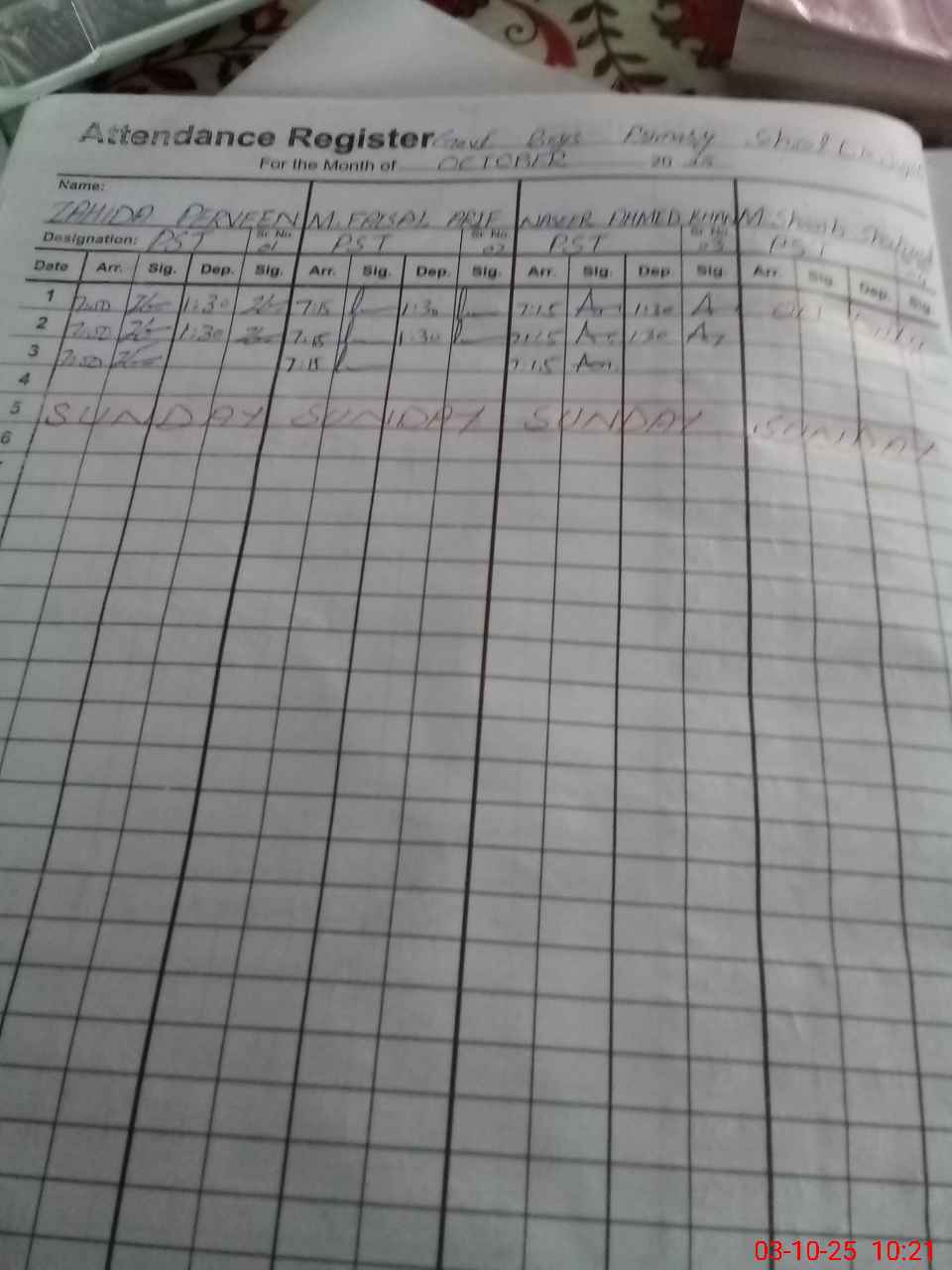 | 32**** | Mu**** Sh**** Sh**** | PST | Regular | 0 | 0 | 0 | 0 | 0 | 0 | 0 | 0 | 0 | Exam Duty |